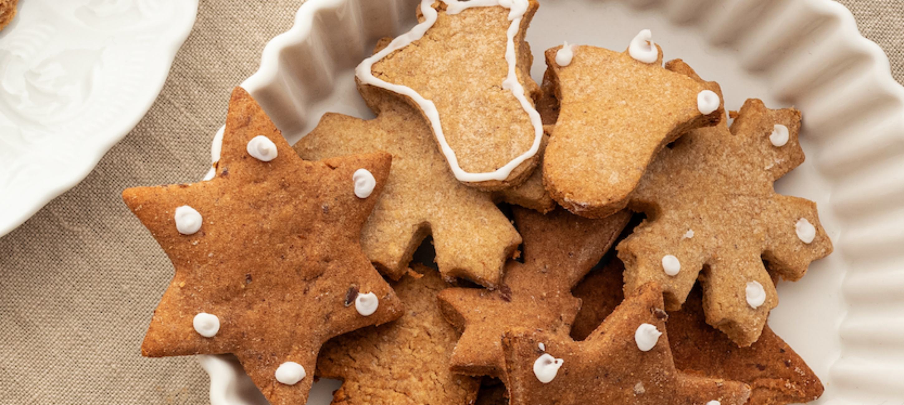 - 2Mezitím si do větší mísy dejte špaldovou mouku, jedlou sodu, perníkové koření a zamíchejte. Přidejte kokosový olej, rýžové mléko, datlový sirup a připravené vejce z lněného semínka a ze směsi vypracujte těsto. Těsto zabalte do potravinářské fólie a nechte v lednici odležet 1 den.