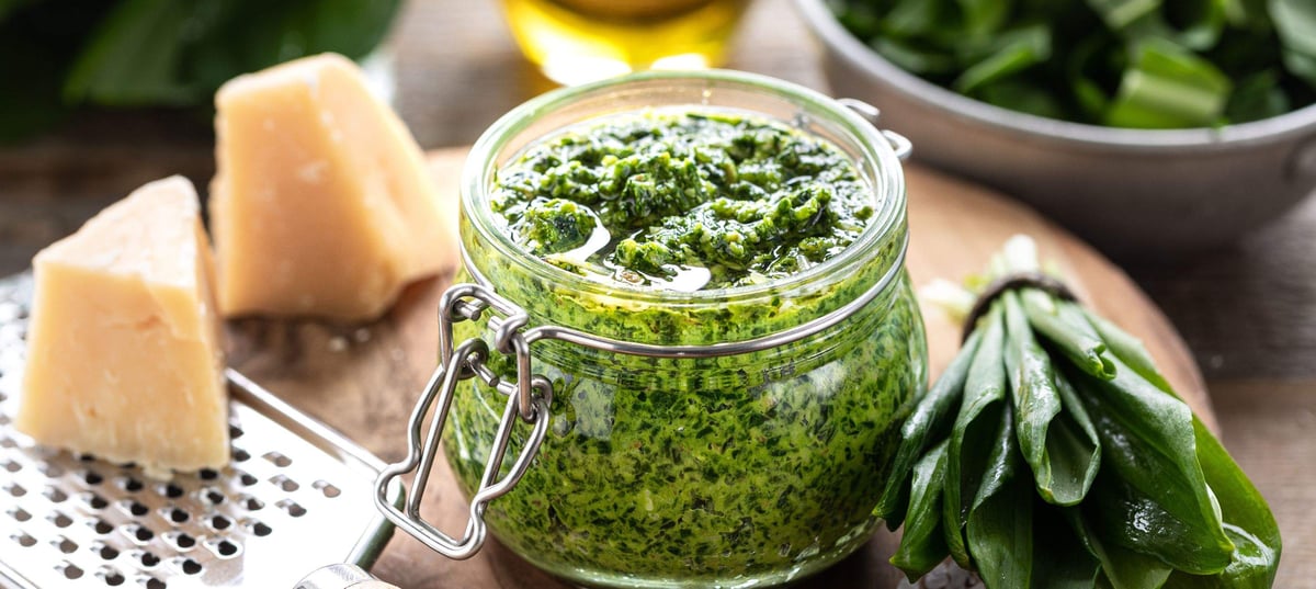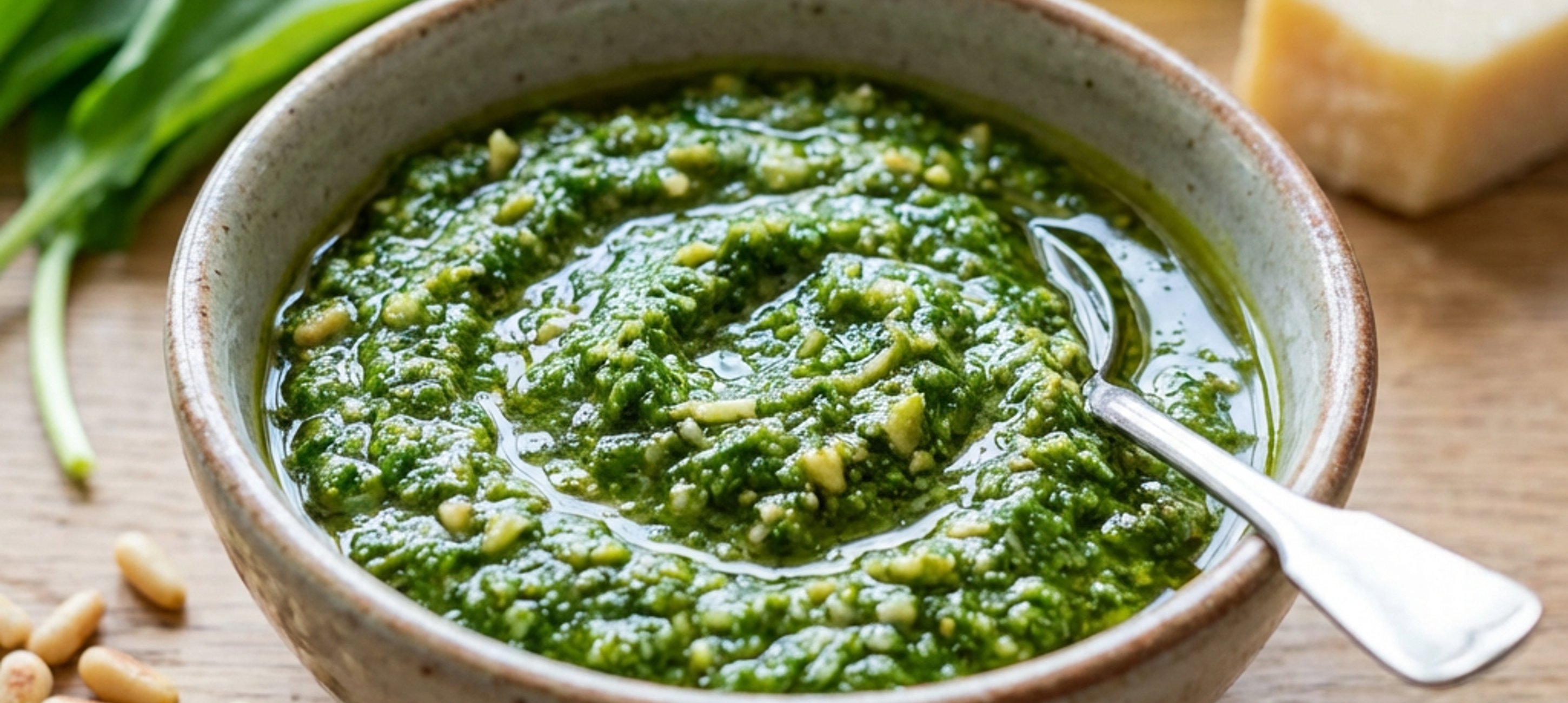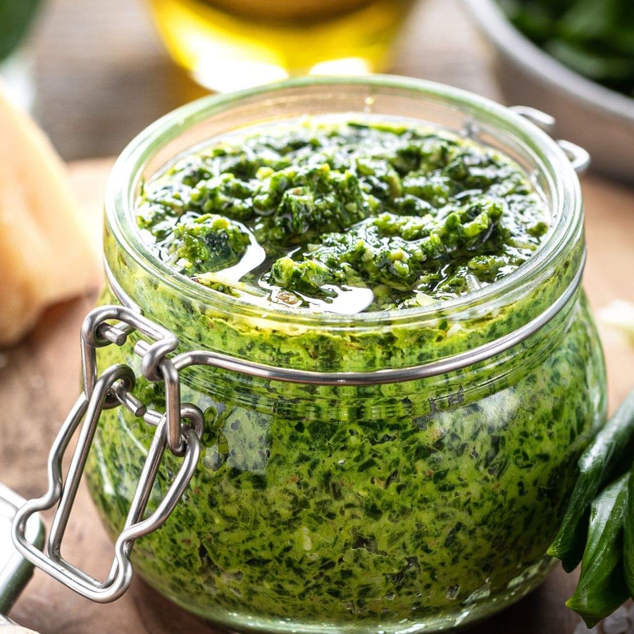 - 2Poté přidejte a rozmixujte parmezán a piniové oříšky. Přilévejte olivový olej podle požadované konzistence.