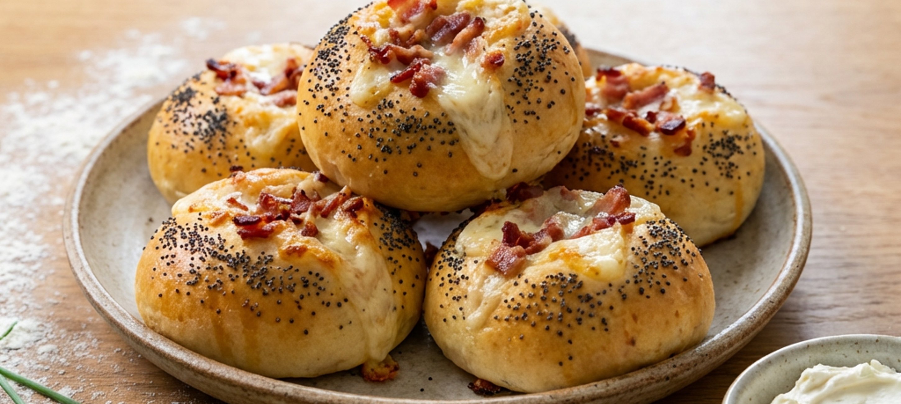 - 6Bulky pomažte vajíčkem a posypte mákem nebo něčím, co máte rádi.