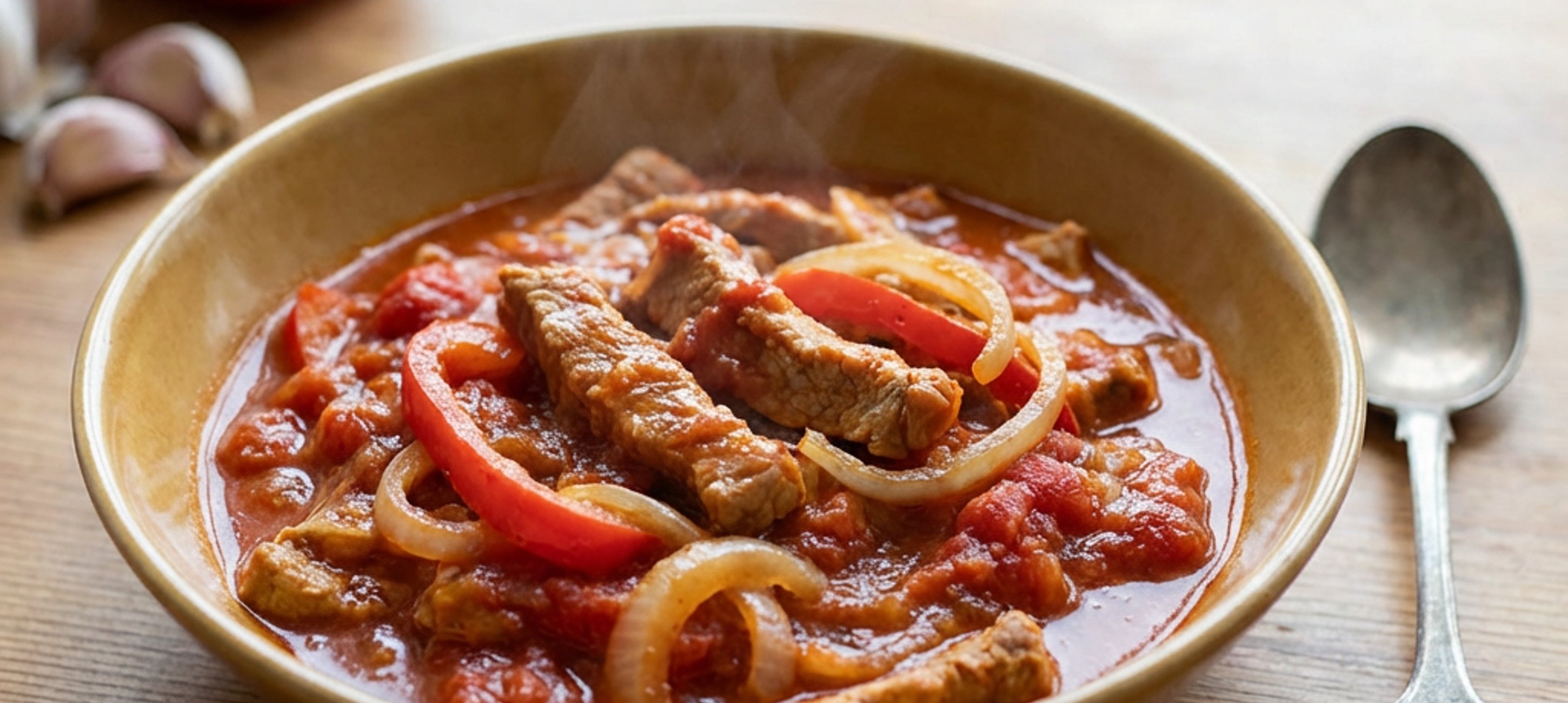 - 5Jakmile bude vepřové maso měkké, vypněte ohřev, hotový guláš rozdělte do 3 talířů a podávejte.