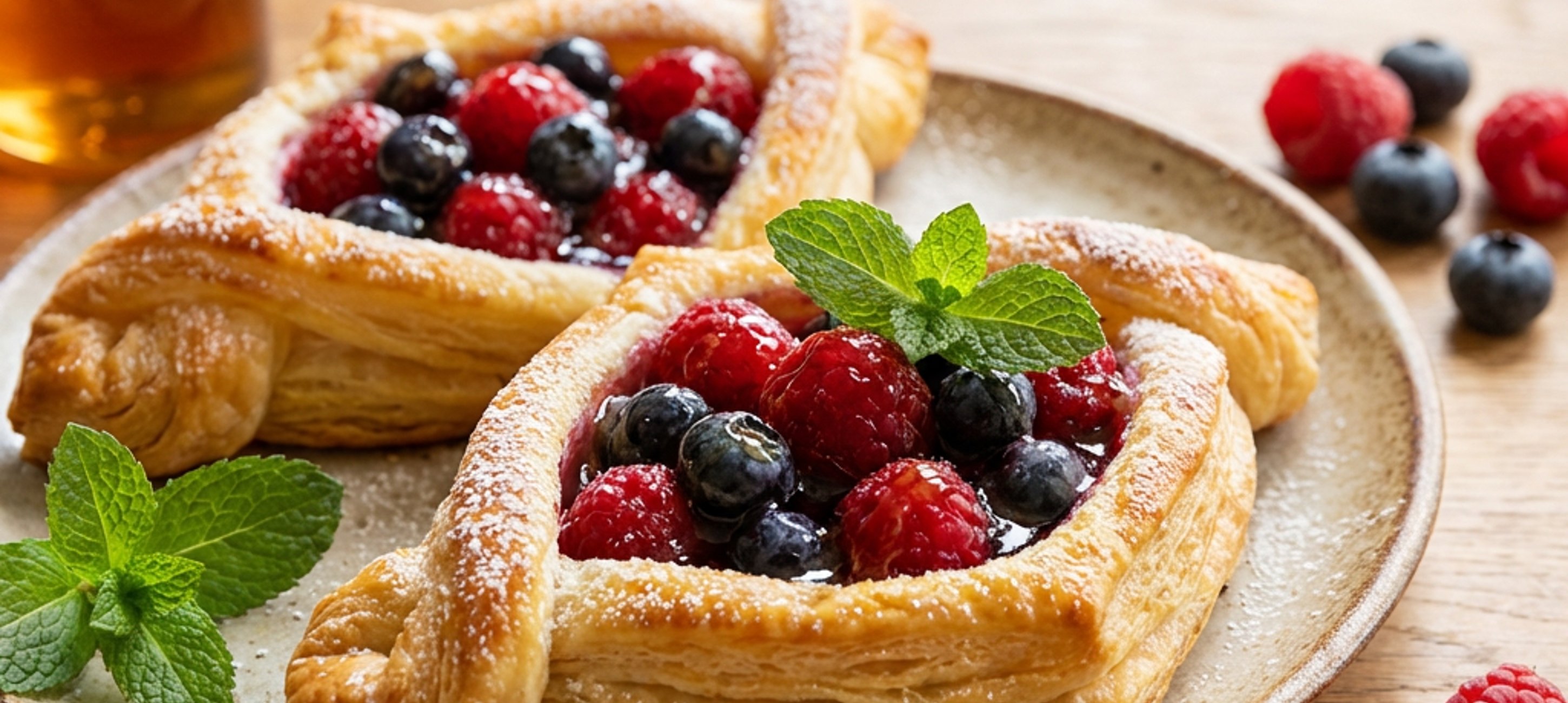 - 8Každou loďku si podeberte obracečkou a otočte. Pocukrujte moučkovým cukrem a ozdobte mátou.