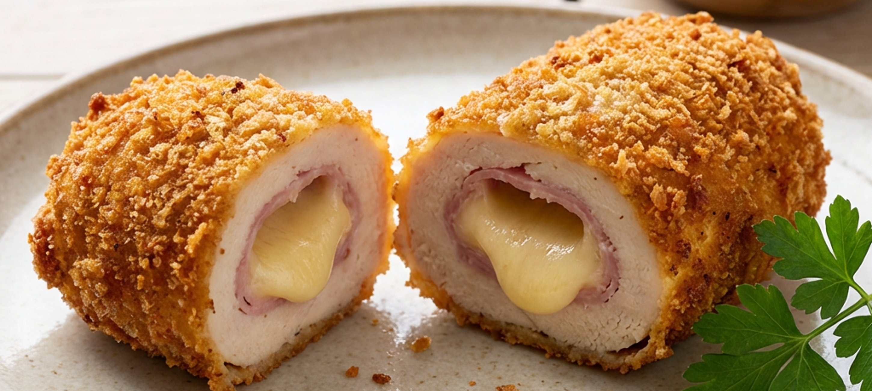 - 2Na jednotlivé plátky masa rozdělte nejprve plátky šunky a poté plátky ementálu. Následně každý plátek masa zabalte do tvaru malého závitku.