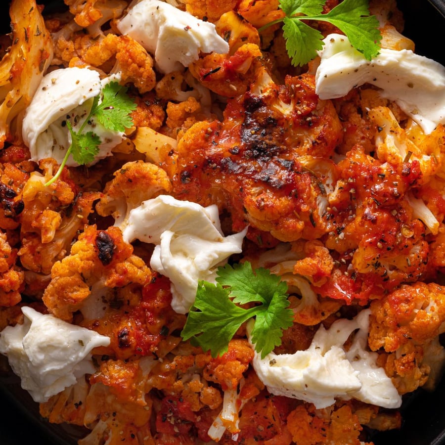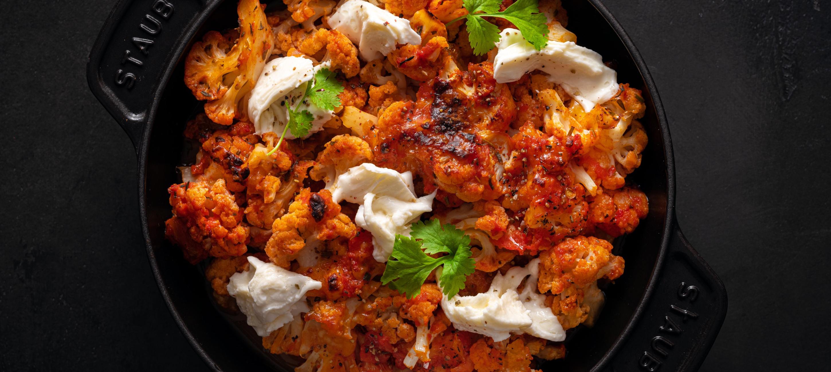 - 6Zapečený květák vyjměte z trouby, rozdělte na 4 porce a podávejte.