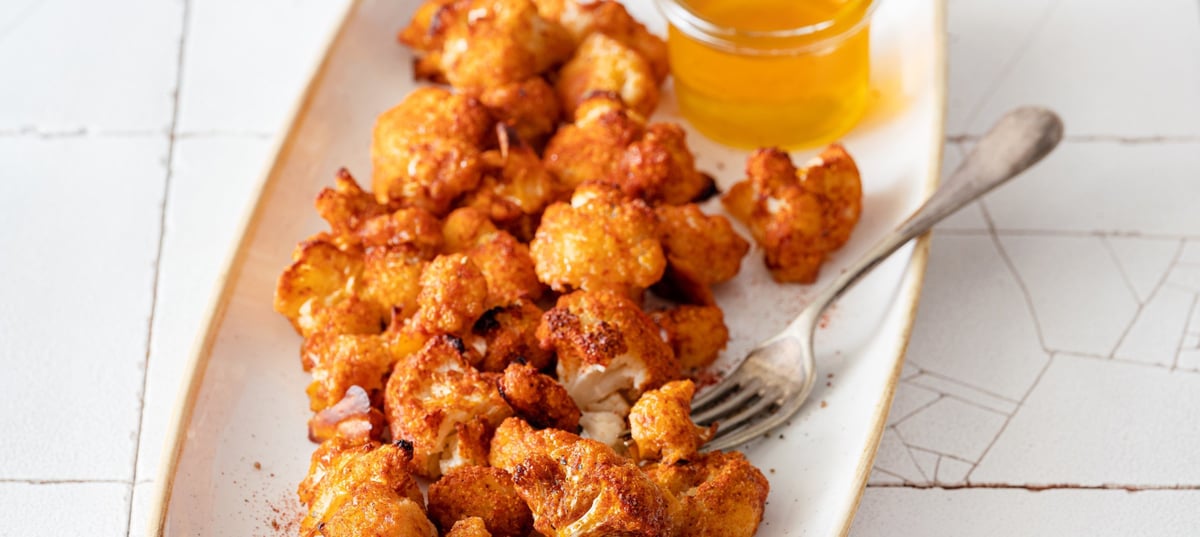 You can serve the cauliflower with a dressing made of soy sauce, ginger, honey, and wine vinegar.