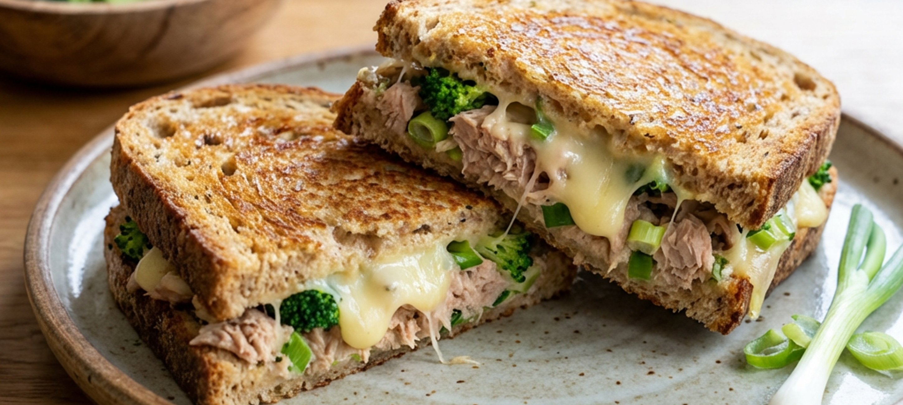 - 4Nyní začněte rozehřívat kontaktní gril a připravte si sendviče: Na 2 plátky chleba rovnoměrně rozprostřete připravenou tuňákovou směs a obě porce přiklopte zbylými dvěma plátky chleba.