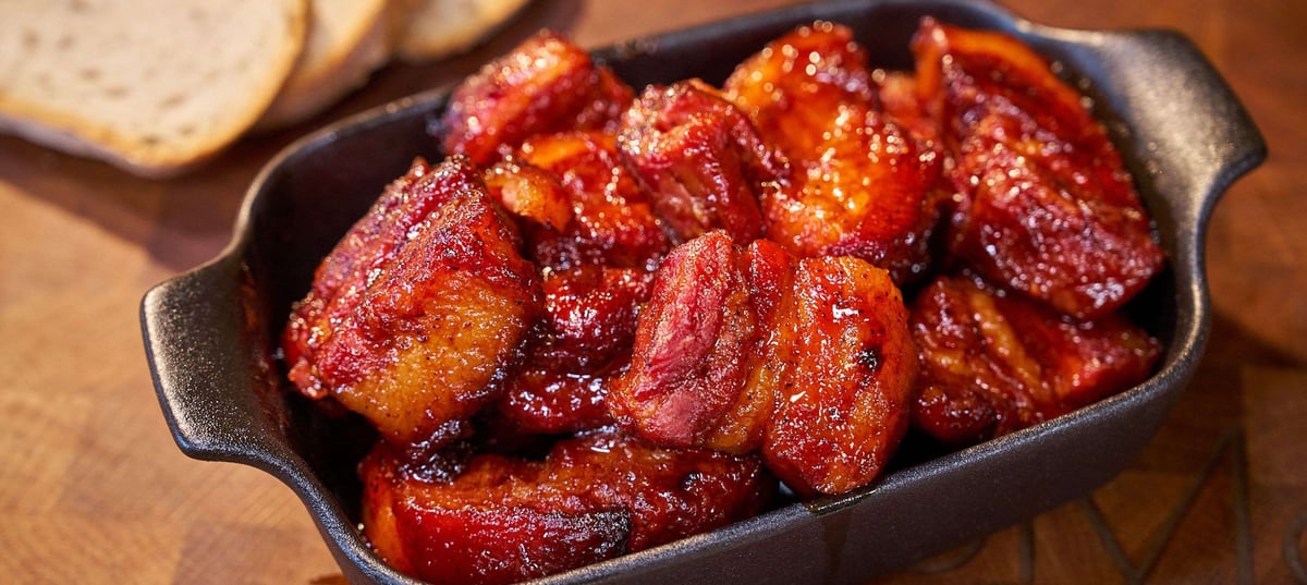 - 4A jak poznáte, že je Pork Belly Burnt Ends správně hotový? Musíte ho jednoduše rozmáčknout mezi prsty. Americkou klasiku můžete dozdobit plátky chilli papričky a servírujte s chlebem a dobře vychlazeným pivem.
