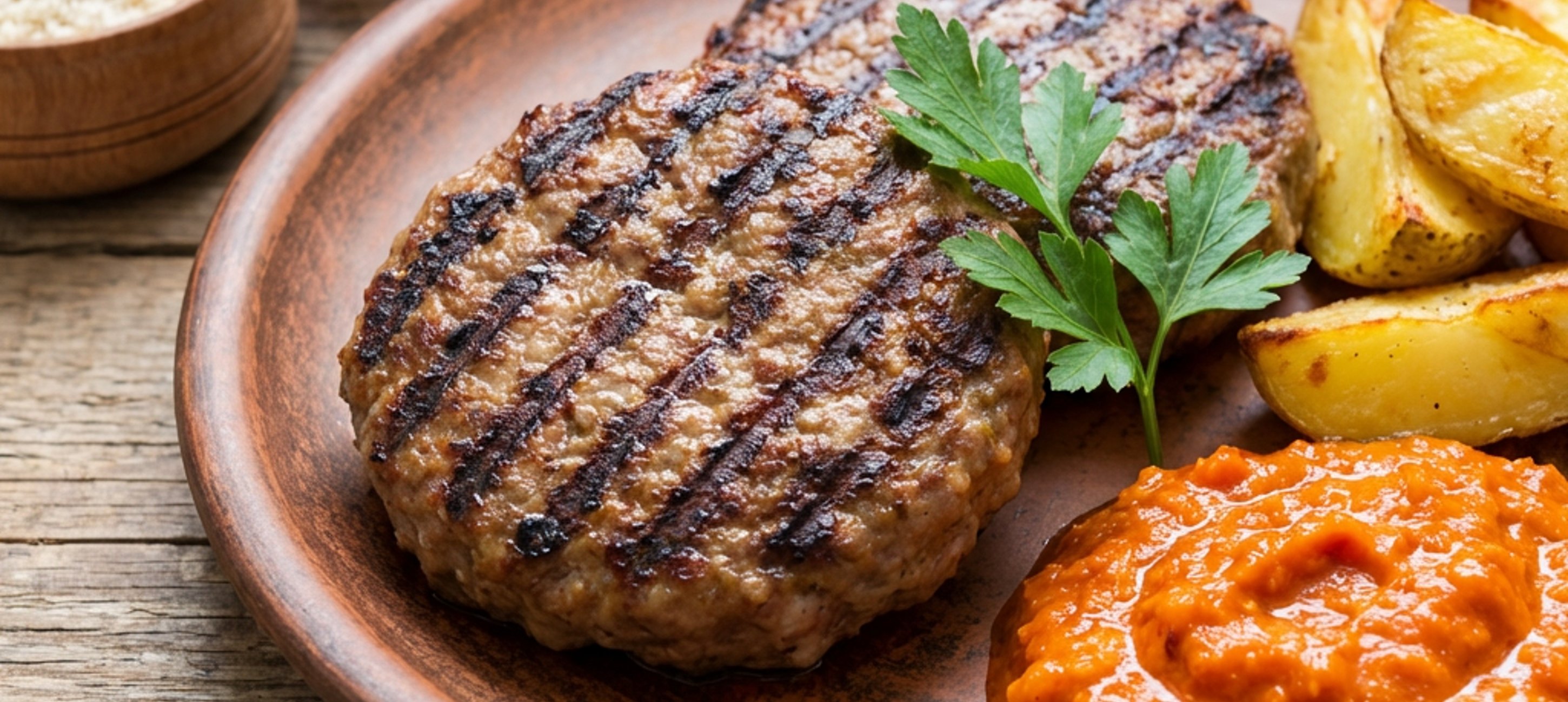 - 6Hotové pljeskavice servírujte s ajvarem.