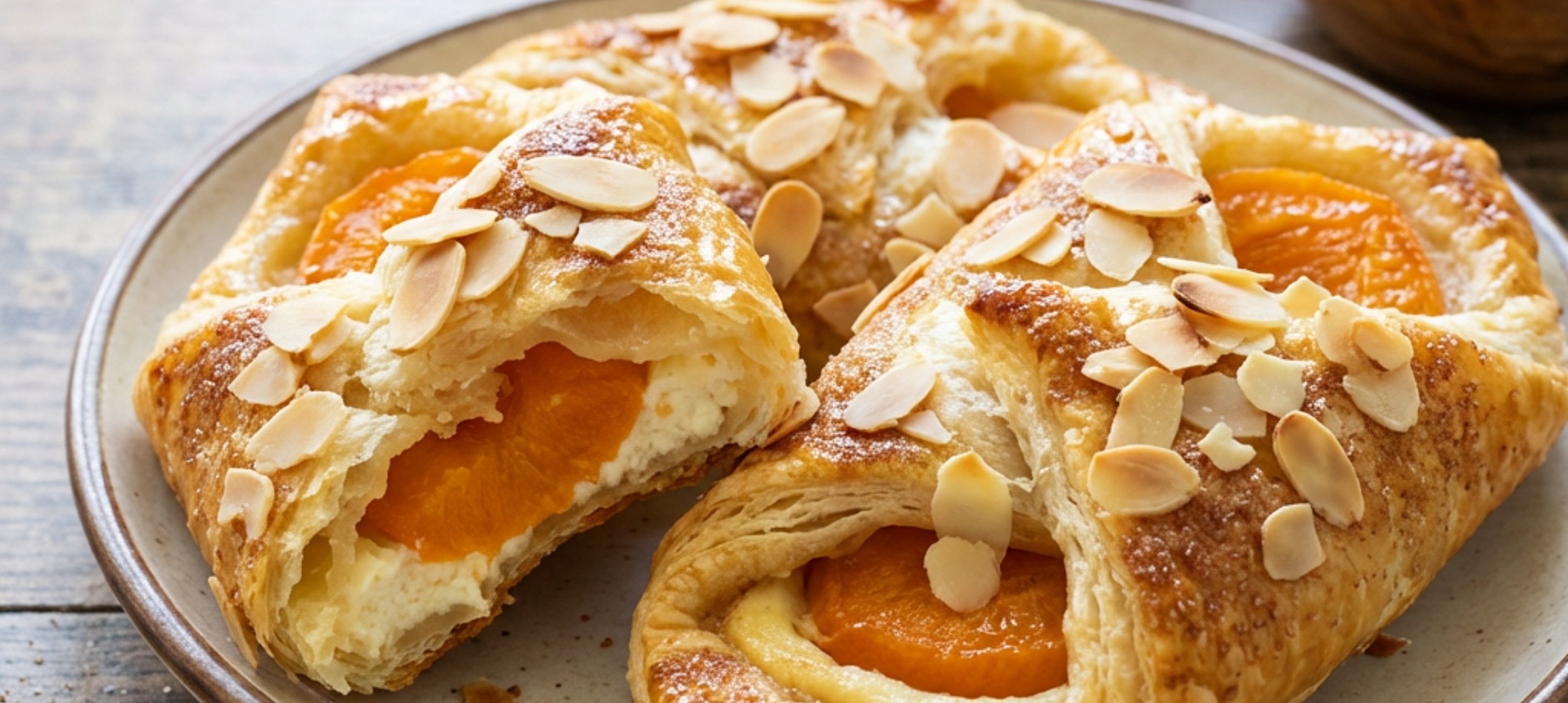 - 2Listové těsto rozložte a rozkrojte na 6 trojúhelníků a potřete tvarohovou směsí.