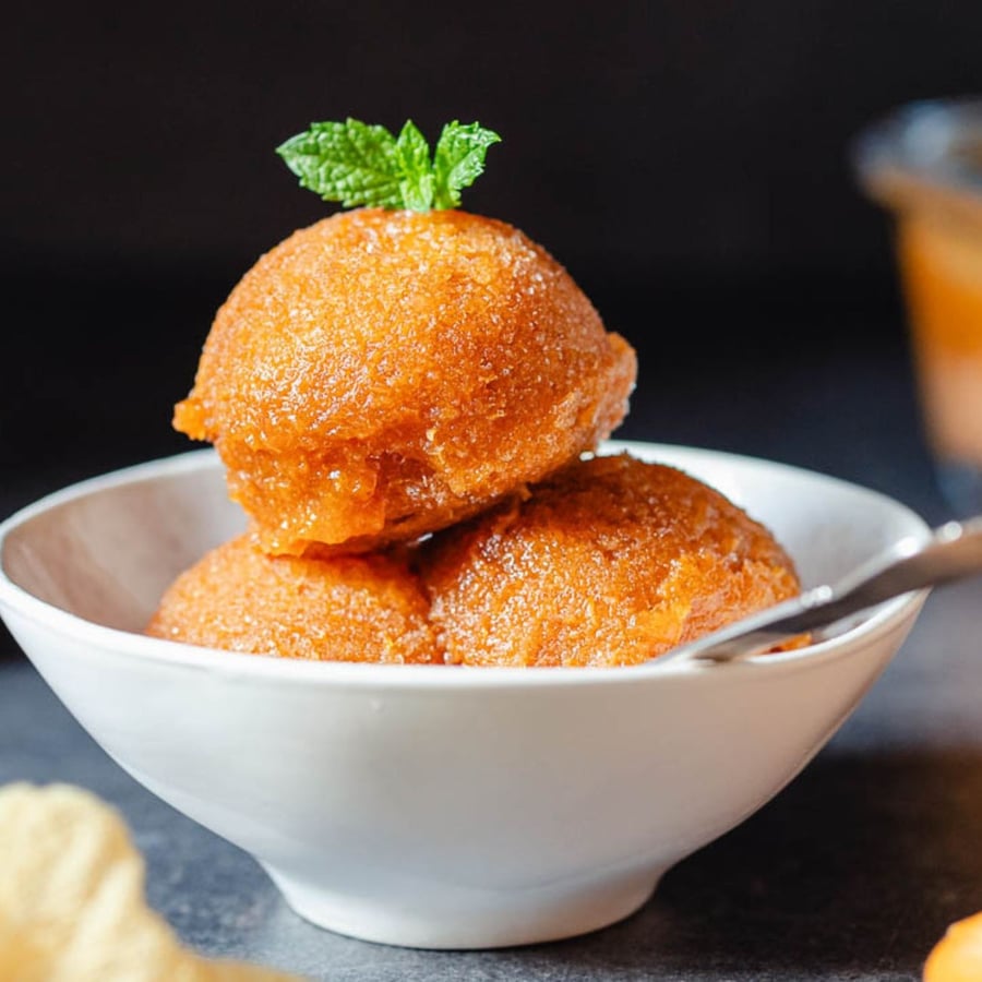 These prepared apricots can then be used at any time to make a quick sorbet. Prepare a countertop blender, into which you place the frozen apricots along with vanilla extract and chicory syrup. If the mixture is too sour, add more chicory syrup to taste. Blend everything together until smooth and serve immediately.