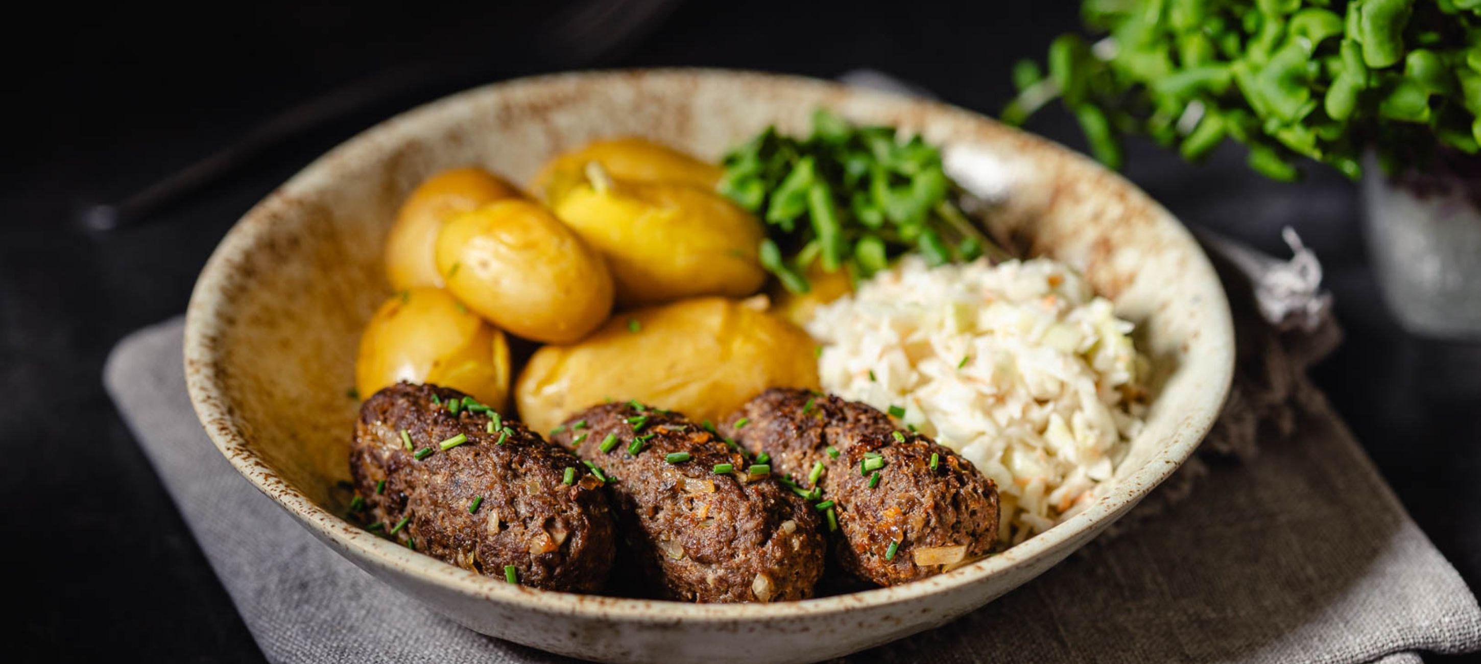 - 1Peel and finely chop the onion. Remove the skin from the garlic and press it. Place the minced meat, onion, garlic, and remaining spices in a bowl. Mix thoroughly by hand or in a food processor to combine the flavors. Let it rest in the fridge for 30 minutes.