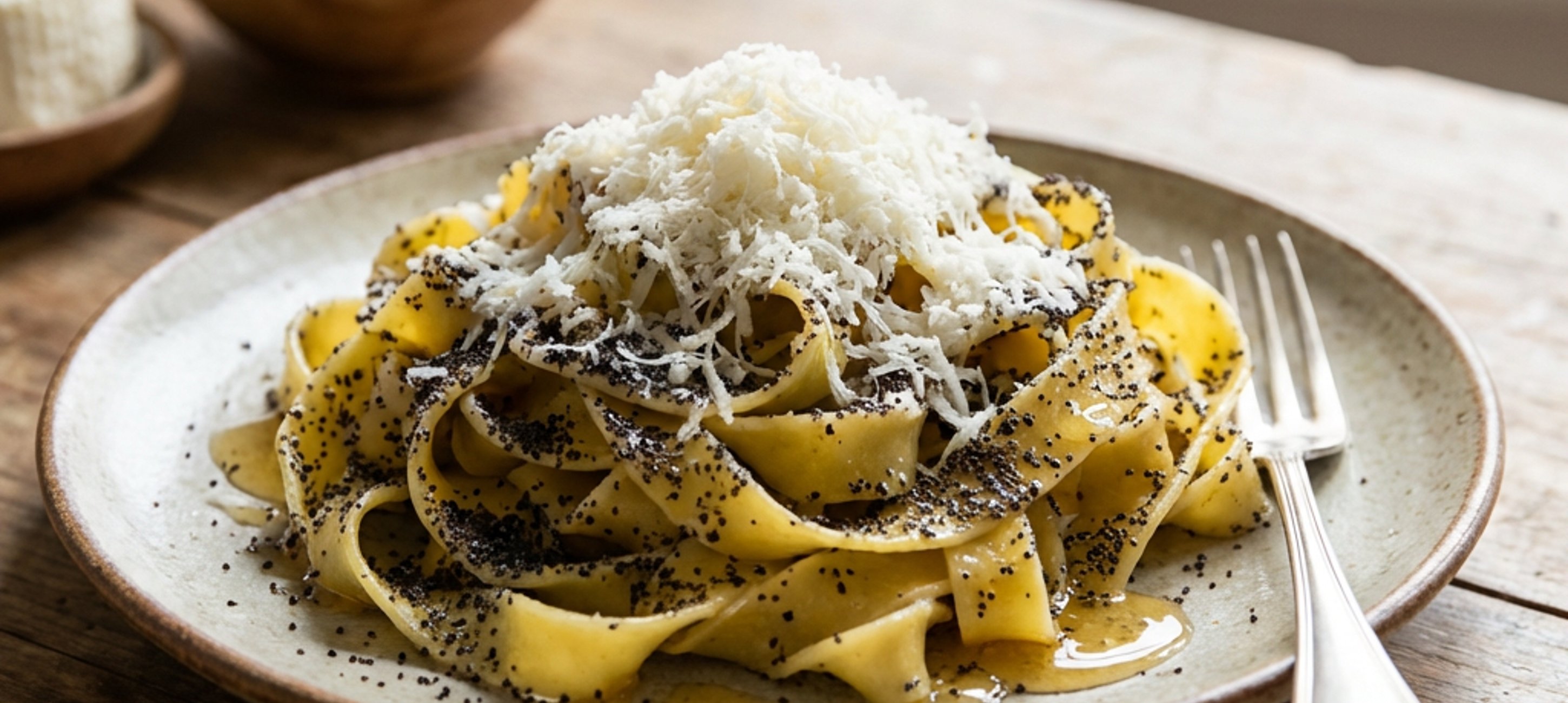 - 2Po uvaření nudle sceďte a ještě teplé vložte zpět do hrnce. Následně k nudlím přidejte rozpuštěné máslo, med a mletý mák. Obsah hrnce promíchejte a výslednou směs rozdělte na 4 porce. Nakonec na každou porci nastrouhejte tvaroh a podávejte.