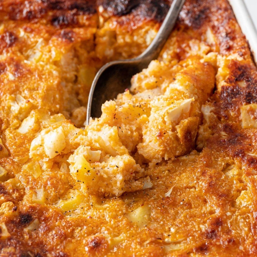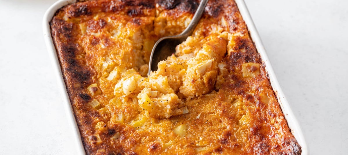 - 4Transfer the blended mixture to the prepared baking dish, add the unblended potato pieces and cauliflower florets. Mix everything together. Place the baking dish in the preheated oven and bake for 35–40 minutes at 195–200 °C.