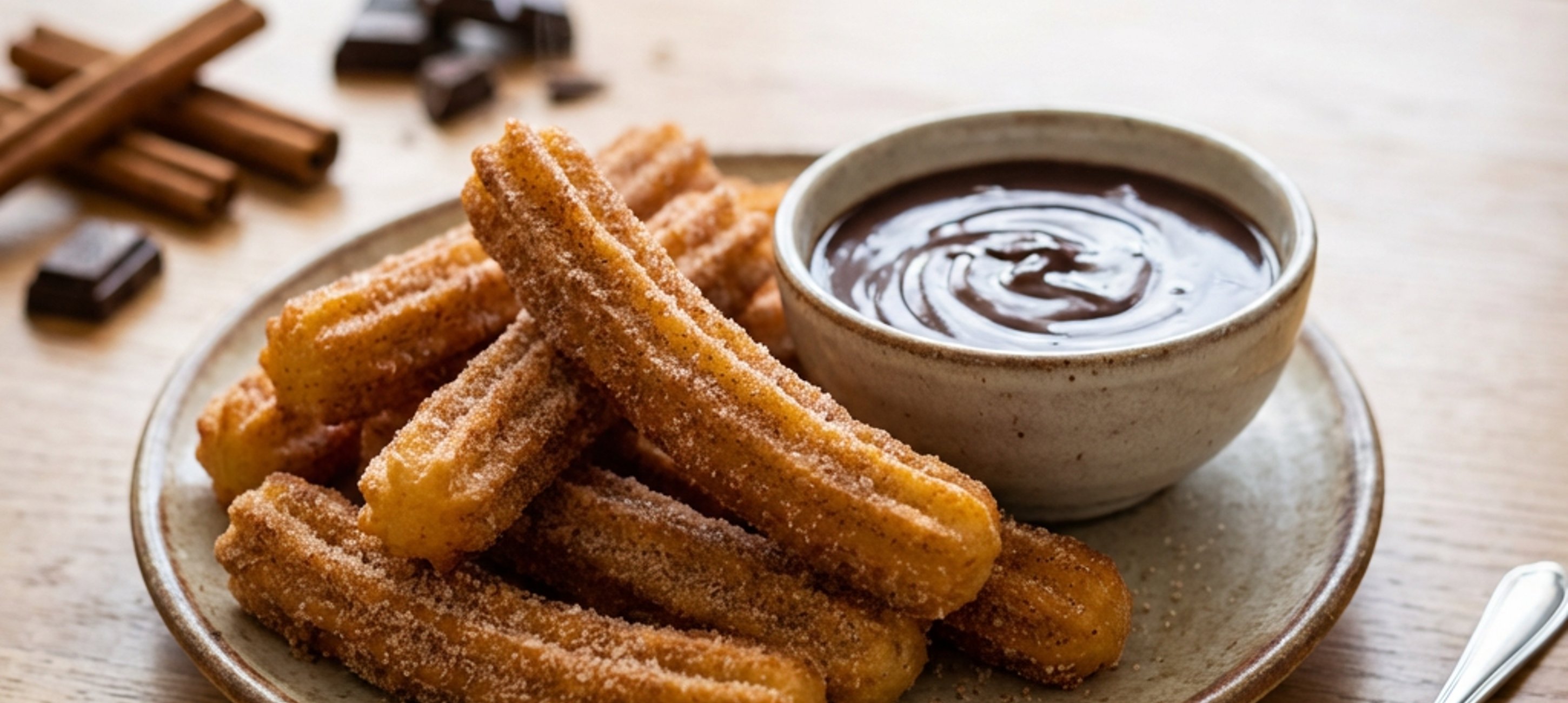 - 3Hotové těsto přesuňte do cukrářského sáčku s řezanou špičkou. V malém kastrůlku rozpalte dostatečné množství oleje, alespoň 600 ml, na teplotu 180 °C a pomocí pytlíku přímo do oleje vytlačte jednotlivé churros, konec těsta oddělte nůžkami. Smažte několik kusů najednou dozlatova, trvá to cca 3 až 4 minuty dle velikosti.