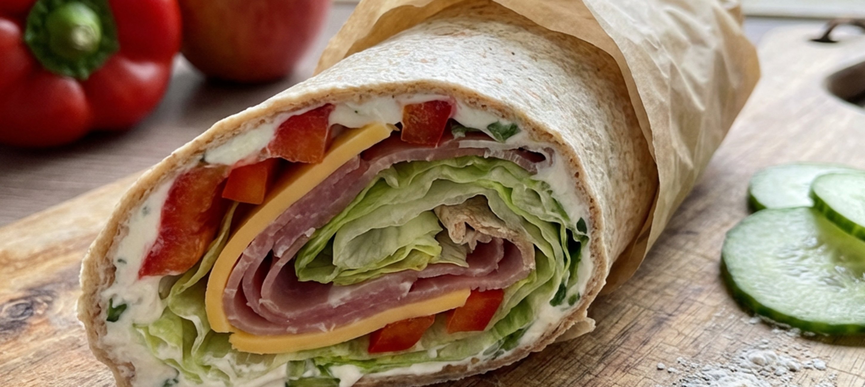 - 5Vychladlé tortilly potřeme žervé, poklademe salátem, šunkou, sýrem a okurkou a paprikou nakrájenou na tenké proužky. Tortillu zabalíme. Aby se tortilla lépe jedla, můžeme ji zabalit ještě do pečícího papíru. Podle stáří dítěte podáváme wrap celý nebo jej překrojíme a podáváme jednu polovinu.