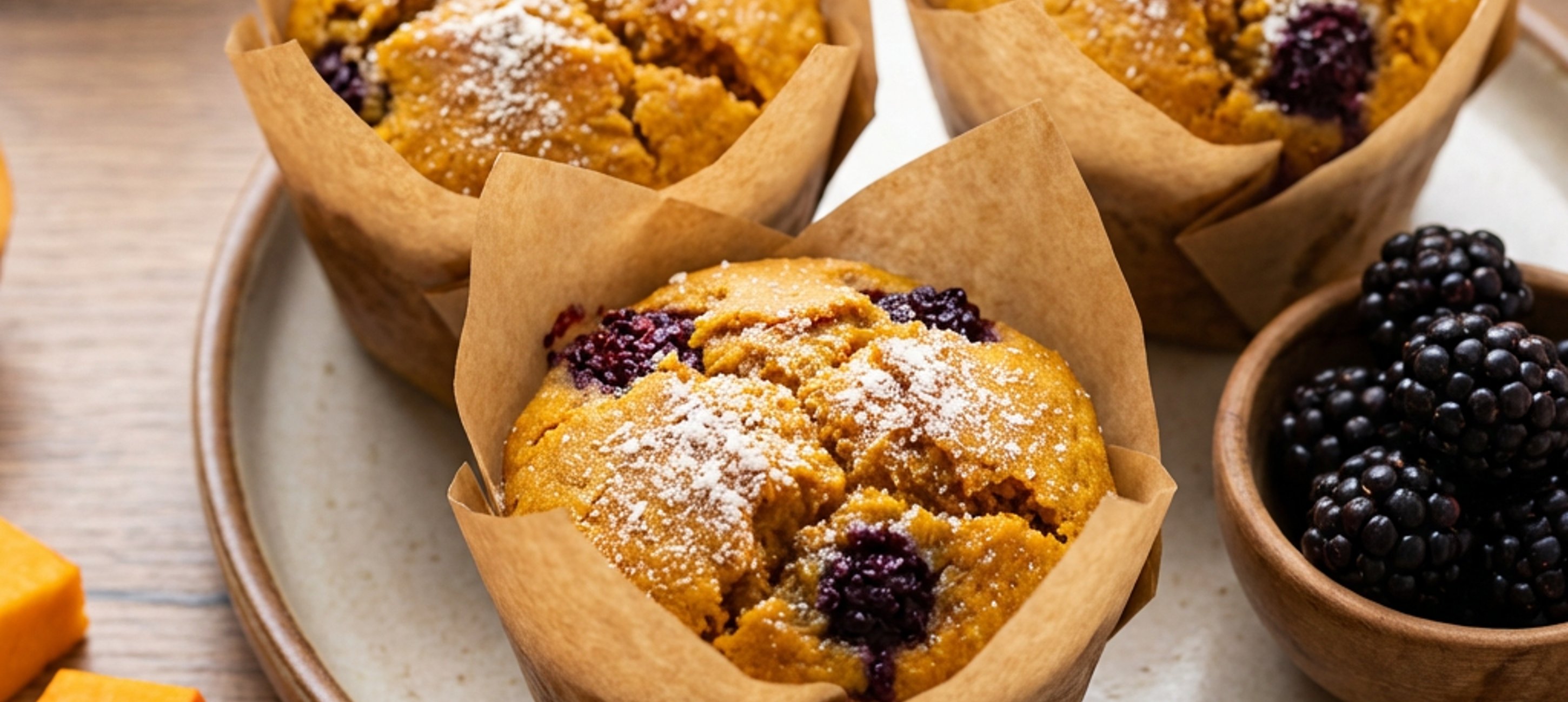 - 3Naplníme papírové košíčky do 3/4, do každého muffinu dáme několik ostružin a pečeme cca 40 minut. Zkusíme špejlí, zda se těsto nelepí. Místo cukru posypeme kokosovou moukou.