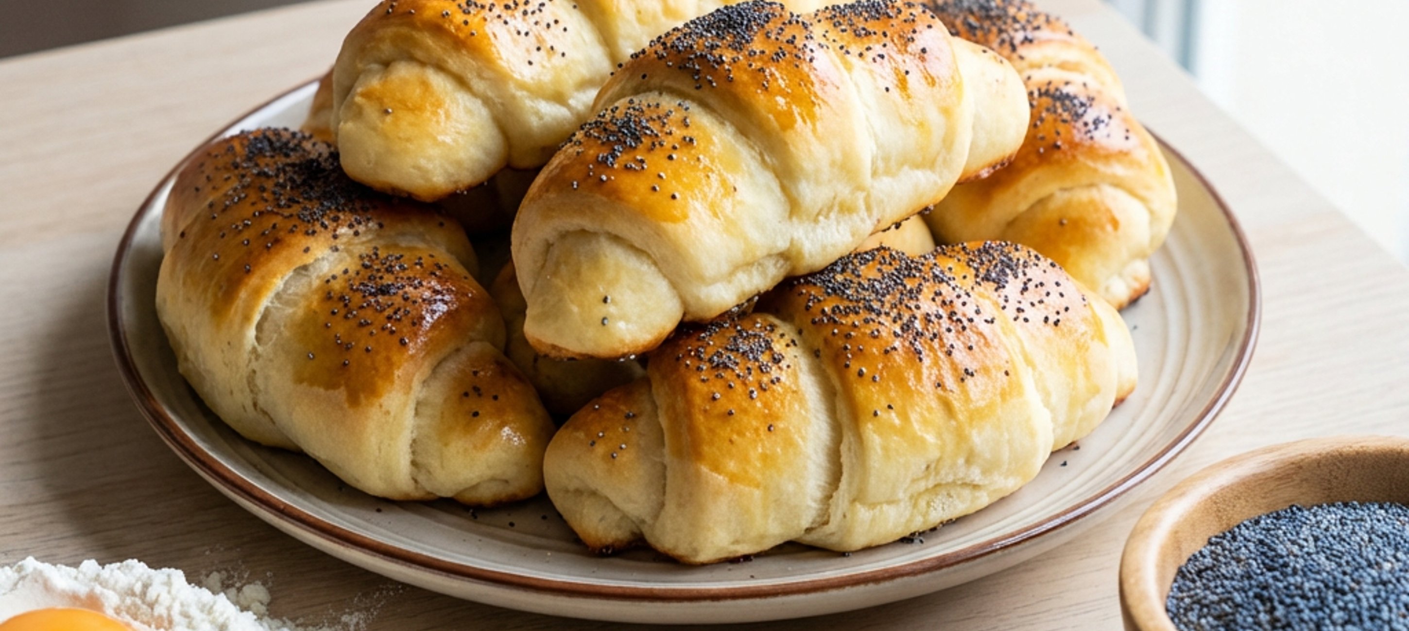 - 5Až loupáky dokynou, rozklepněte si do hrníčku vejce, rozšlehejte ho a loupáky jím potřete. Následně loupáky posypte mákem.