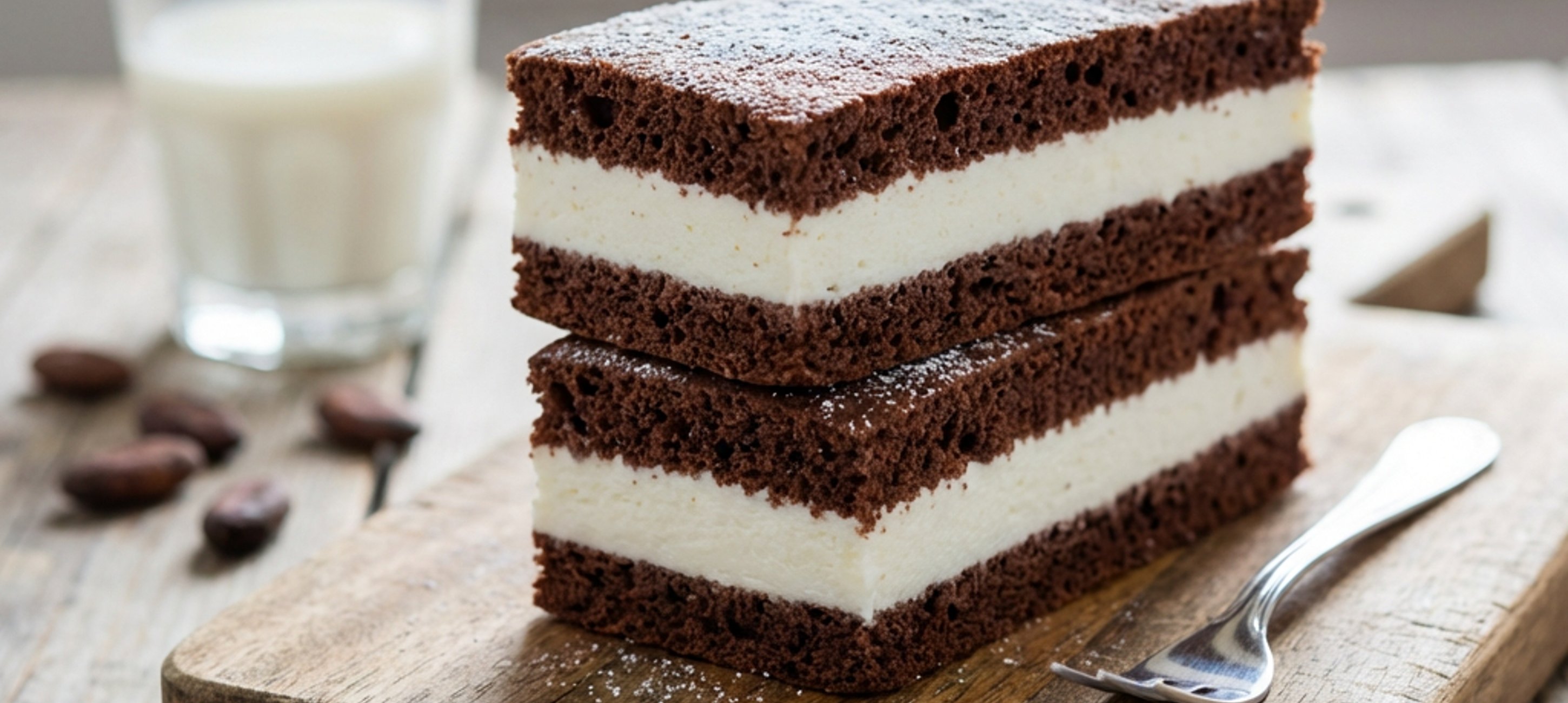 - 9Vychlazený mléčný řez nakrájejte na 8 porcí a podávejte.