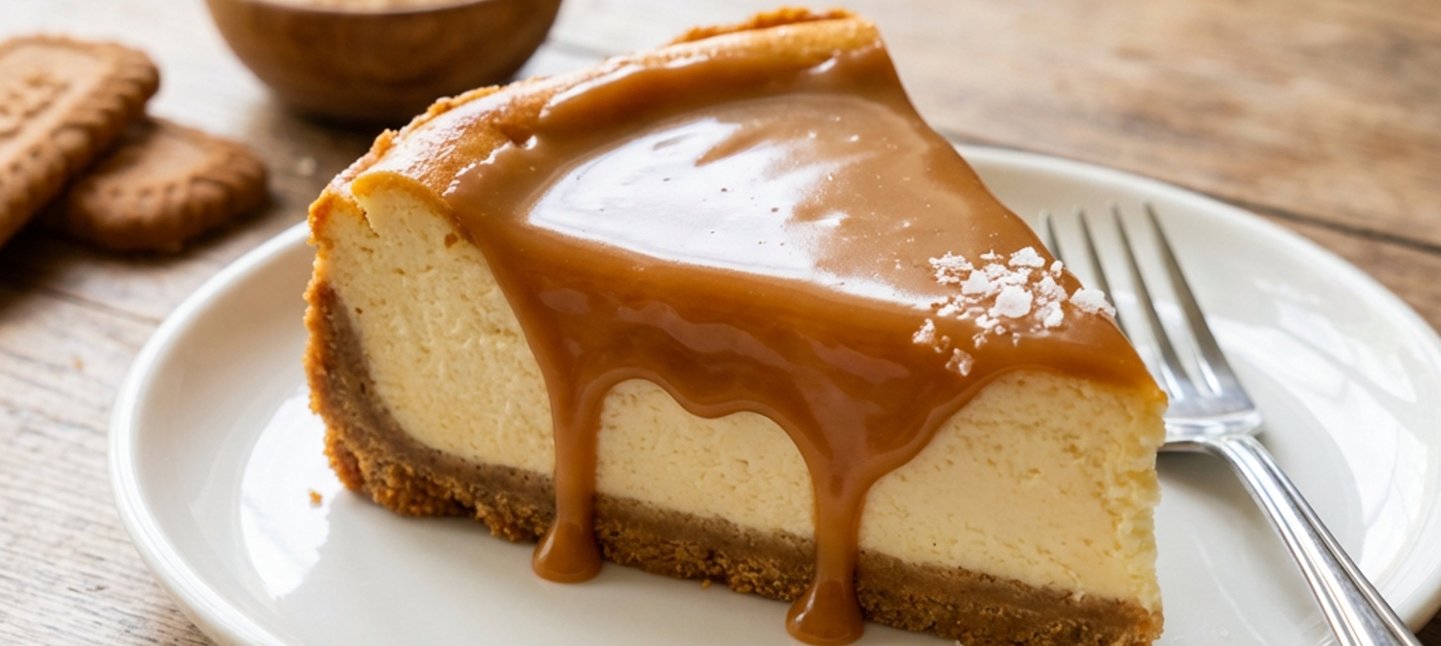 - 6Vychladlý cheesecake polijte karamelovou polevou a podávejte.