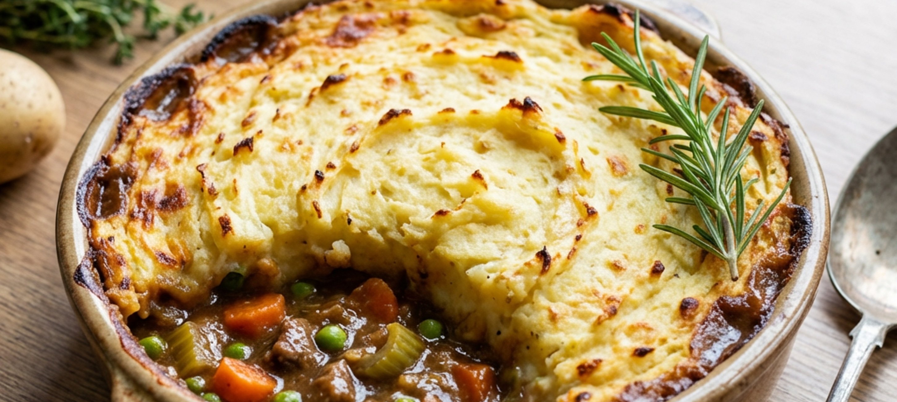 - 5Masovou směs přendáme do zapékací mísy a na směs navrstvíme bramborovou kaši. Dáme zapéct do trouby na 25 minut na 180 stupňů. Po upečení posypeme pokrm čerstvým rozmarýnem a servírujeme.