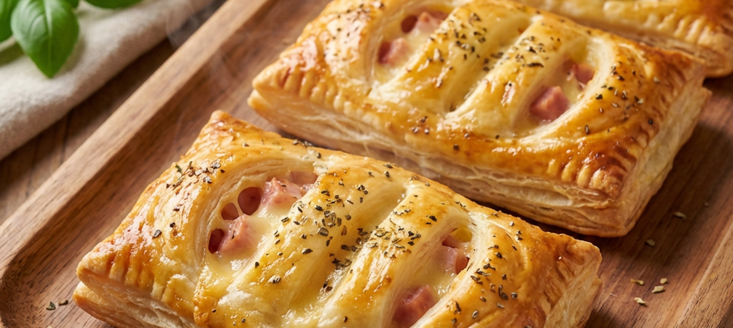 - 4Nyní na 10 čtverečků vyskládejte plátky goudy a šunky takovým způsobem, aby se ani ony nedotýkaly okrajů těsta a nepřesahovaly přes kečupovou směs. Takto připravené čtverečky zakryjte těmi zbylými potřenou stranou směrem dolů a vzniklé kapsičky naskládejte na vyložený plech.