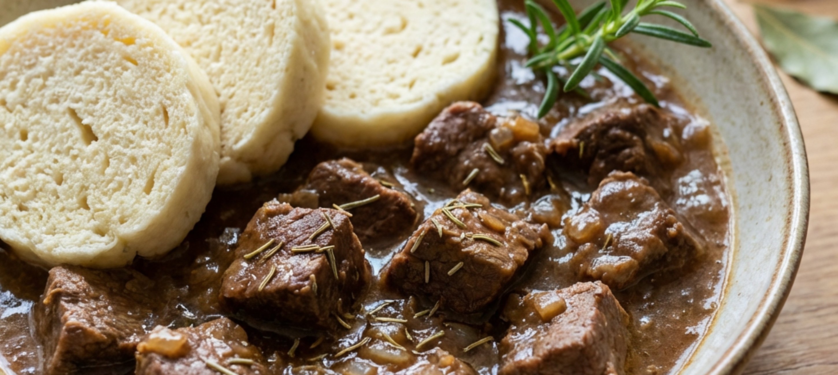 - 7Až se dovaří masová směs v prvním hrnci, vypněte ohřev, přidejte do hrnce máslo a promíchejte. Následně obsah hrnce rozdělte do 4 talířů, ke každé porci přidejte knedlík a podávejte.