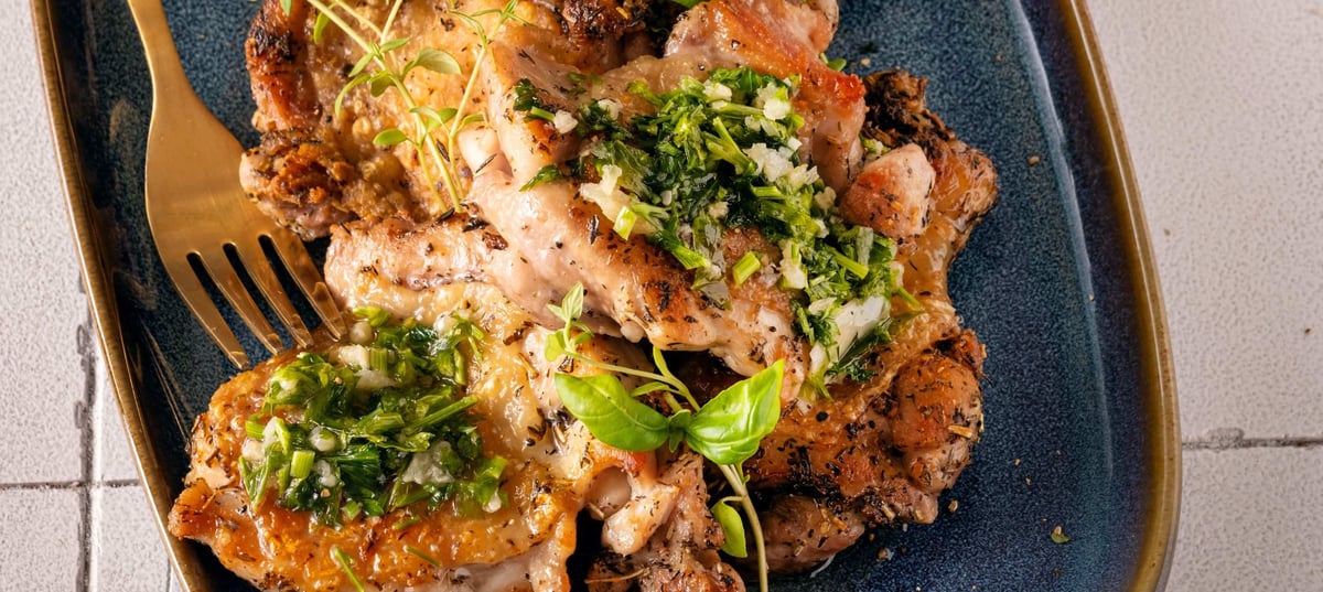 - 1Place the chicken meat in a medium-sized bowl and sprinkle it with Provençal herbs, salt, and pepper.