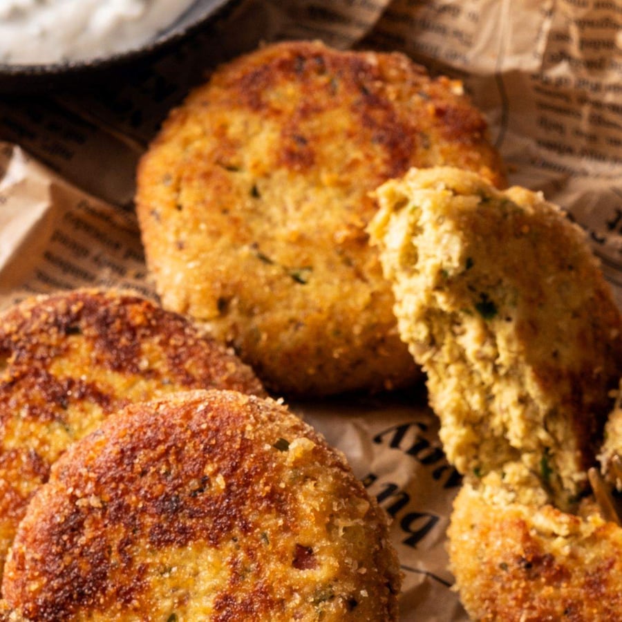 - 4In a large pan, heat 70 ml of sunflower oil over medium heat. Then place the coated patties in the pan and fry them for 6–7 minutes on each side over low to medium heat. Meanwhile, prepare a plate lined with paper towels and place the fried patties on it to remove excess fat.