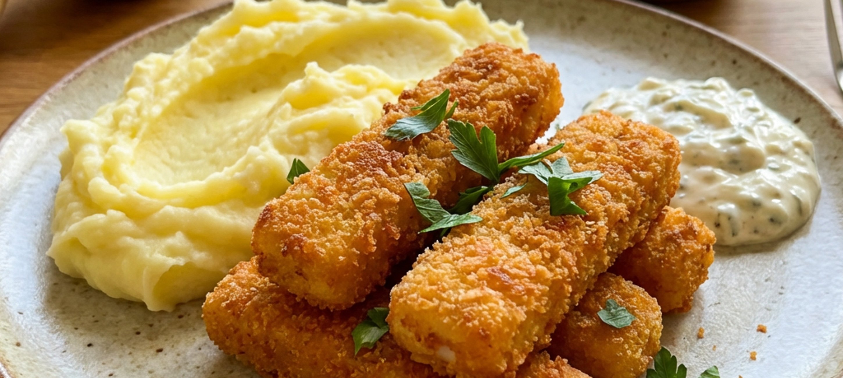 - 6Až se dovaří brambory, sceďte je, přidejte k nim do hrnce 100 ml mléka a máslo a elektrickým šlehačem vyšlehejte obsah hrnce do hladké kaše. Hotovou kaši dochuťte solí a podávejte s rybími prsty.