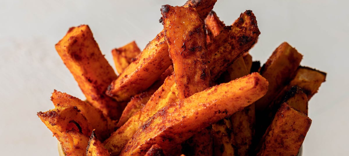 - 2Wash the sweet potatoes, peel them, and cut them into slices about 2 cm thick, then cut them into fries about 1.5–2 cm wide.