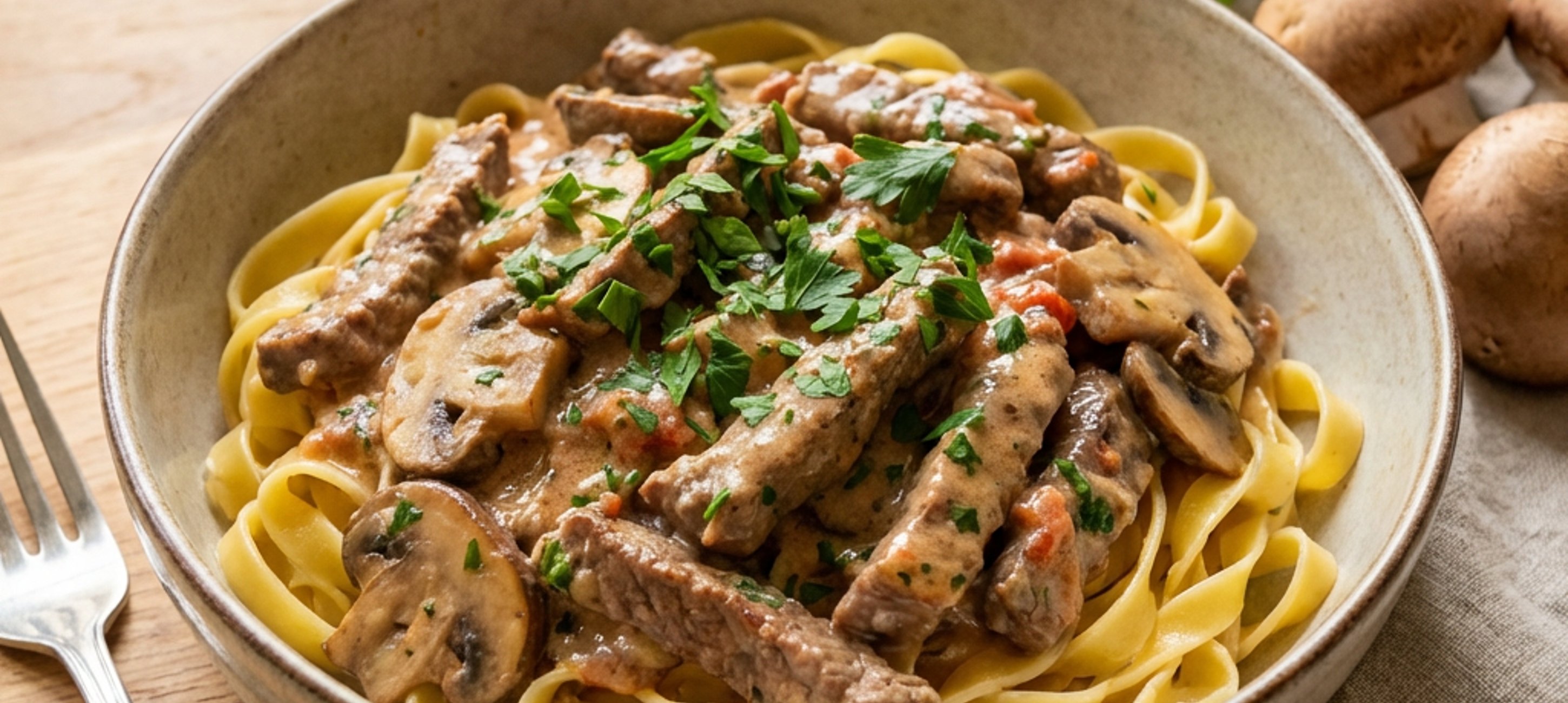 - 4Zakysanou smetanu smícháme s moukou a nakonec přidáme k masové směsi. Poté společně povaříme 3 minuty. Přidáme nasekanou petržel a případně dochutíme solí a pepřem. Podáváme s vařenými Tagliatelle.