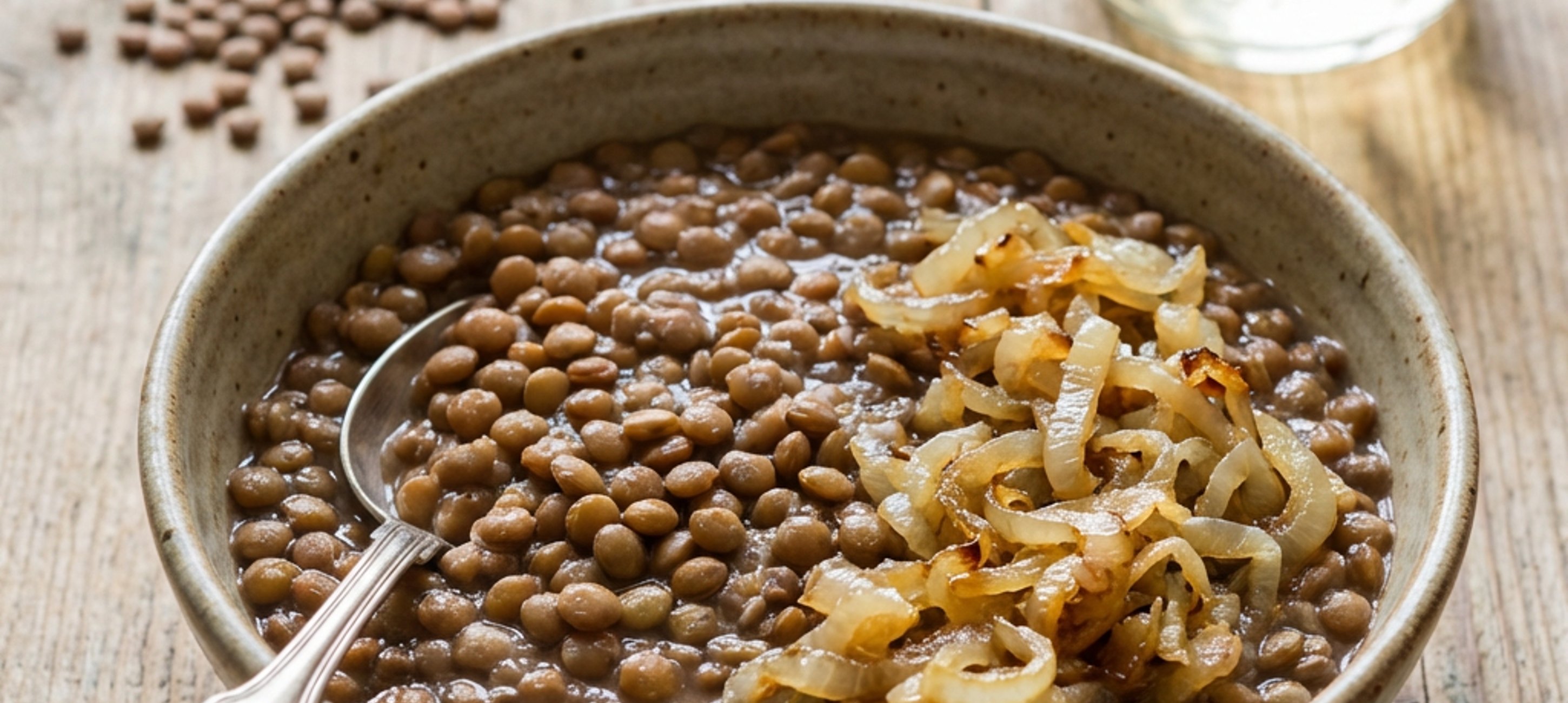 - 4Cibulku přidáme do hrnce k čočce.