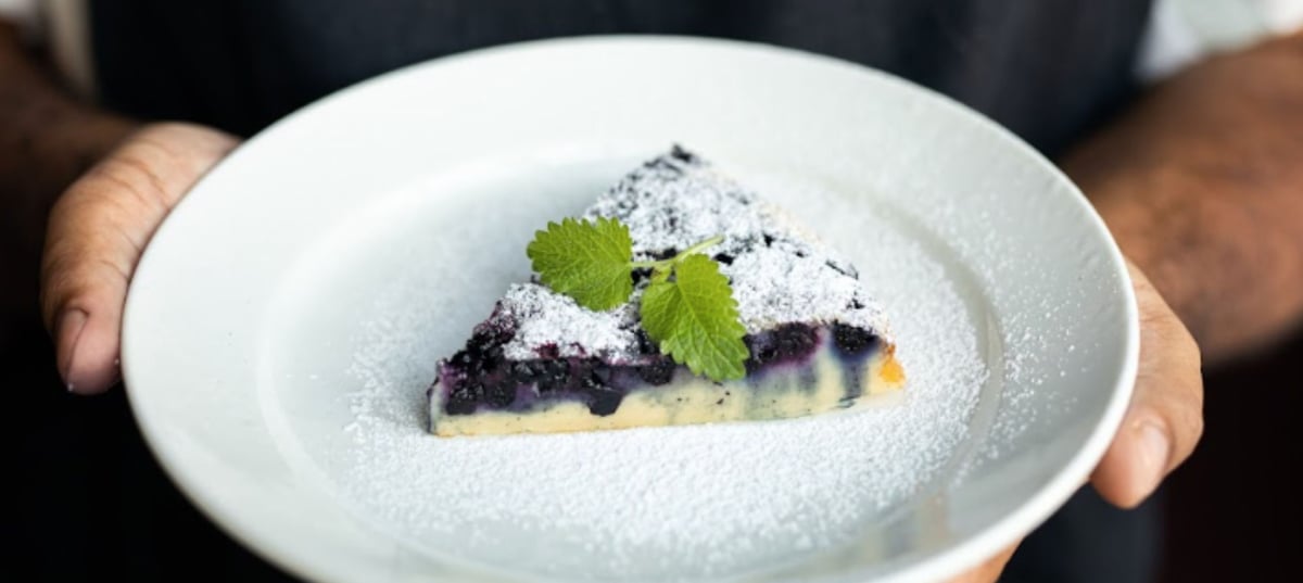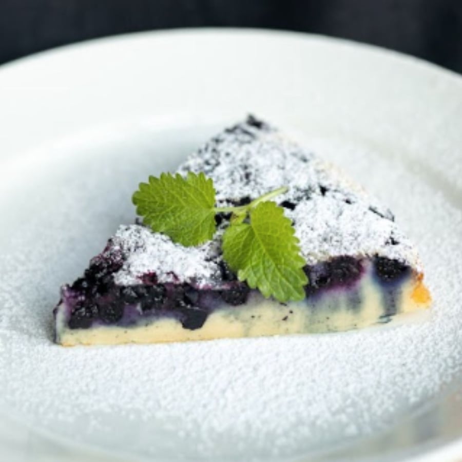 - 2Preheat the oven to 180 °C. Line a round cake tin with baking paper. Pour the batter into it and spread the blueberries over it. Finally, cut pieces of butter and place them on top.