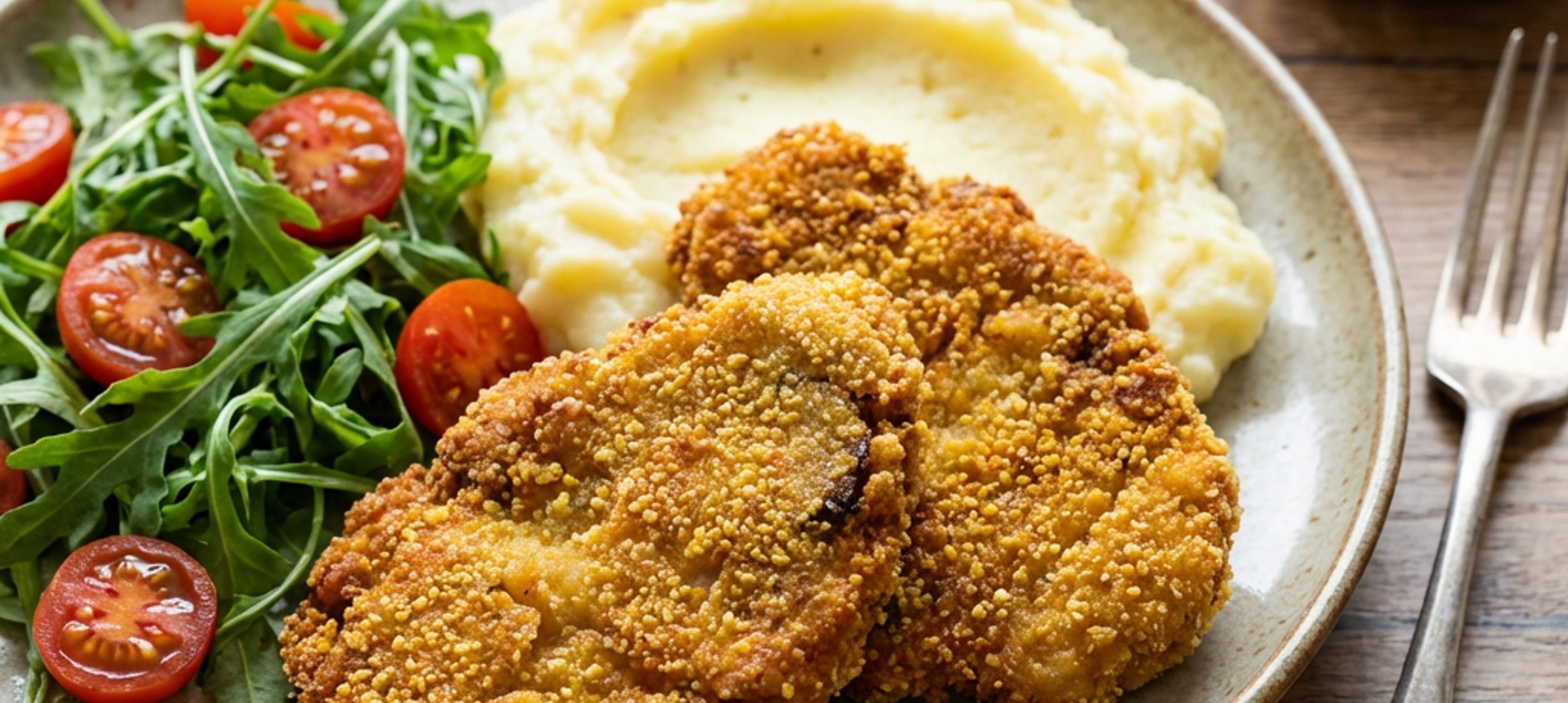 - 4Jakmile se dopečou hlívové řízky, vyndejte je z trouby, rozdělte je k jednotlivým porcím bramborové kaše a podávejte.
