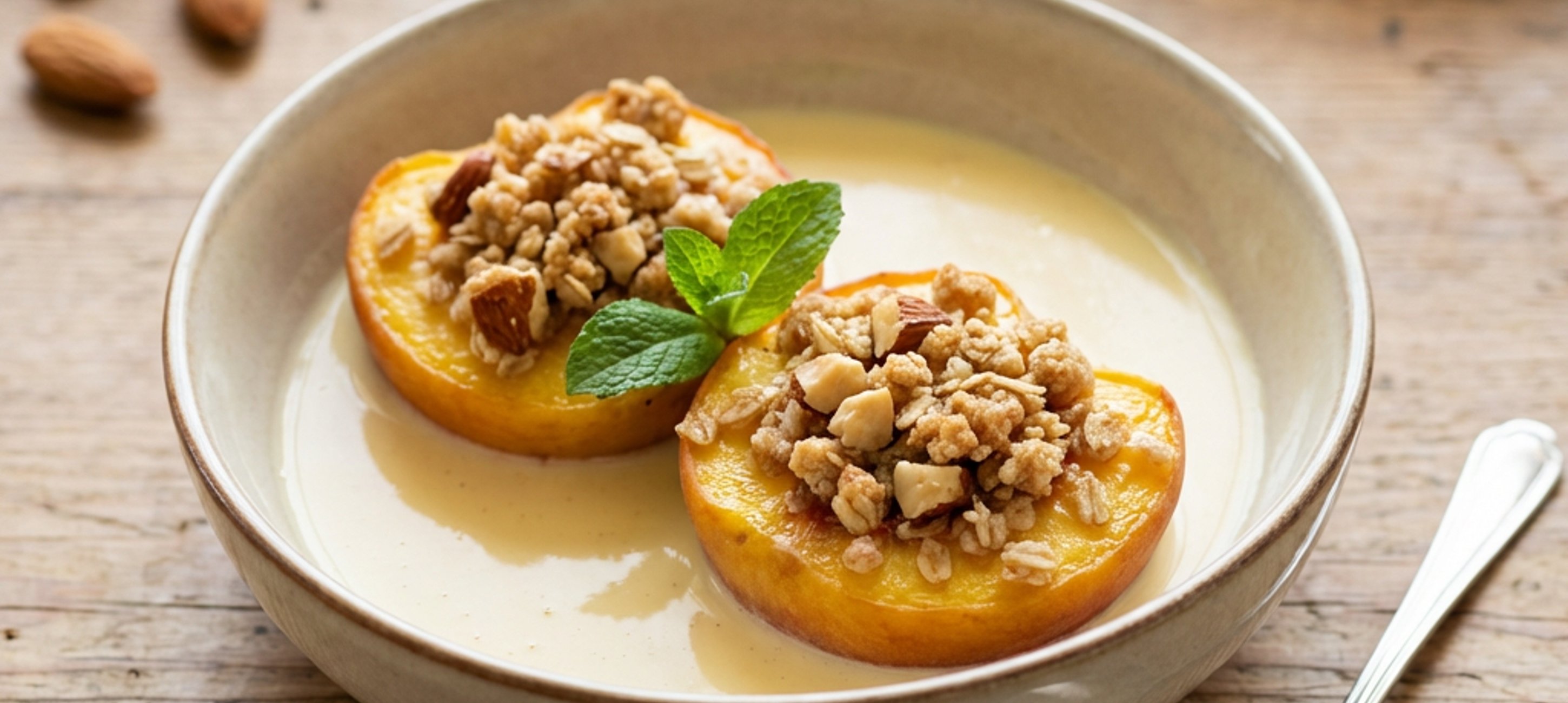 Před podáváním můžete broskve ozdobit lístkem čerstvé máty.