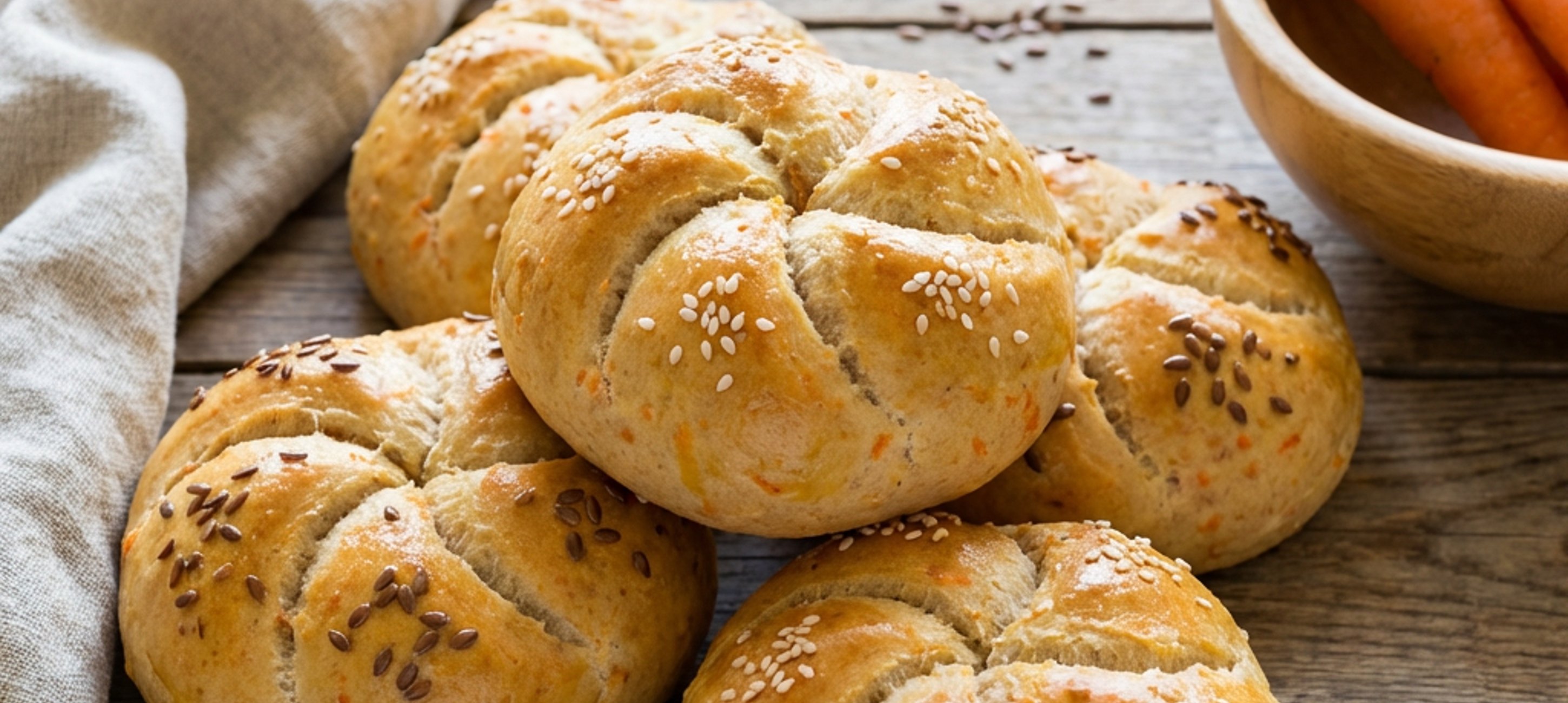 Po potření vejcem můžete kaiserky ještě posypat bílým sezamem nebo loupaným lněným semínkem. Upečené kaiserky podávejte například se smetanovým sýrem, najemno nasekanou pažitkou a mrkví nastrouhanou na tenké pásky.