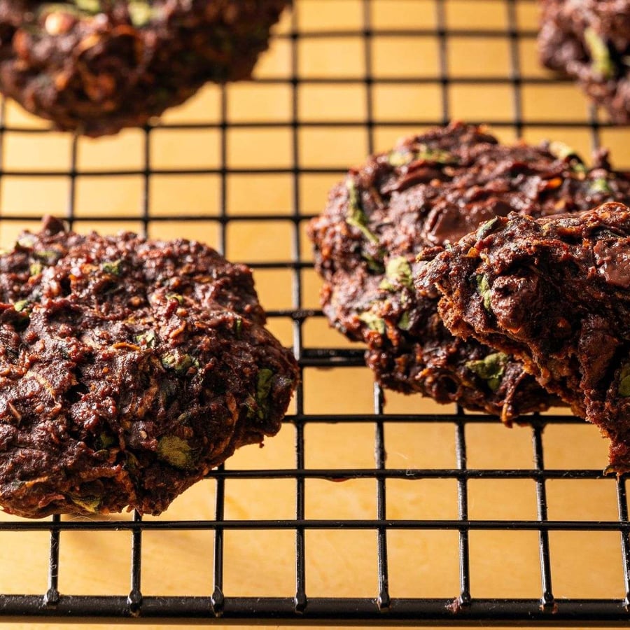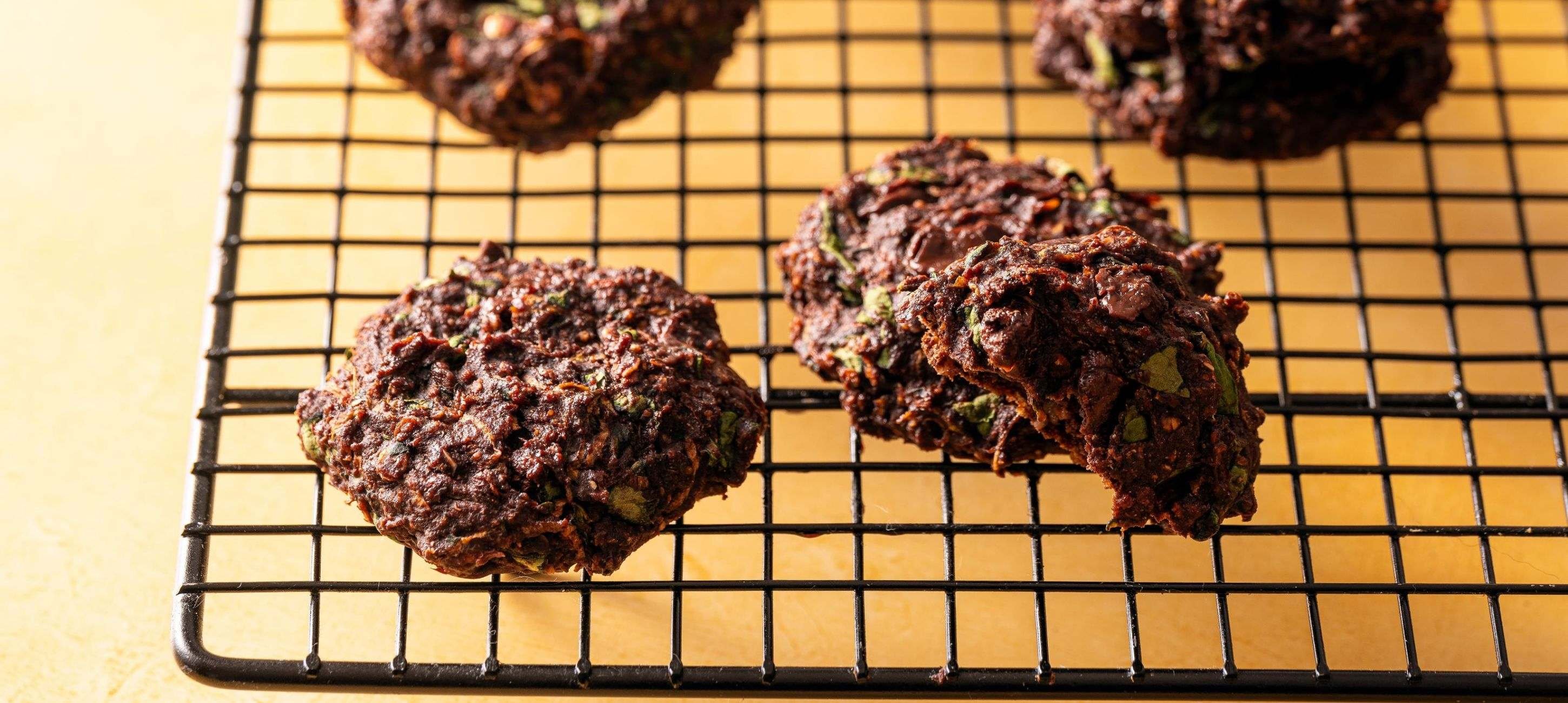 - 2Peel the carrot, wash the zucchini, and grate both finely into a large bowl. Rinse the baby spinach under cold water, chop finely, and add to the bowl along with the apple puree, honey, and 1 egg. Mix the contents of the bowl, add whole wheat flour, oats, Dutch cocoa, baking powder, and cinnamon, and work the mixture into a smooth dough. Finally, coarsely chop the chocolate and mix it into the dough in the bowl.