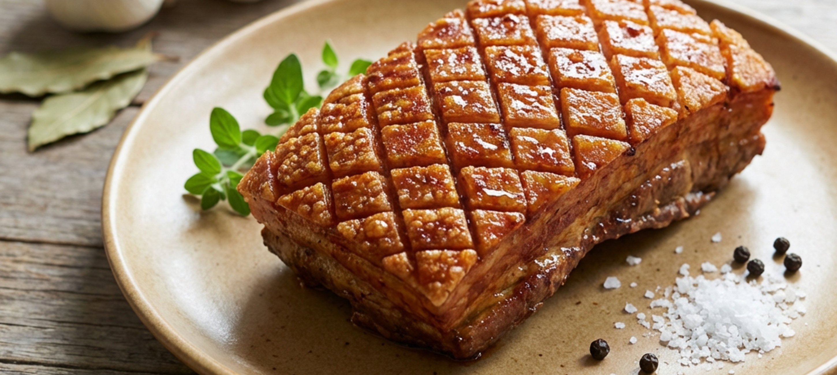 - 4Po upečení bůček z trouby vytáhněte. V kastrolu ohřejte olej na teplotu kolem 180 °C. Pomocí naběračky kůži polévejte vroucím olejem aby se vyškvařila.