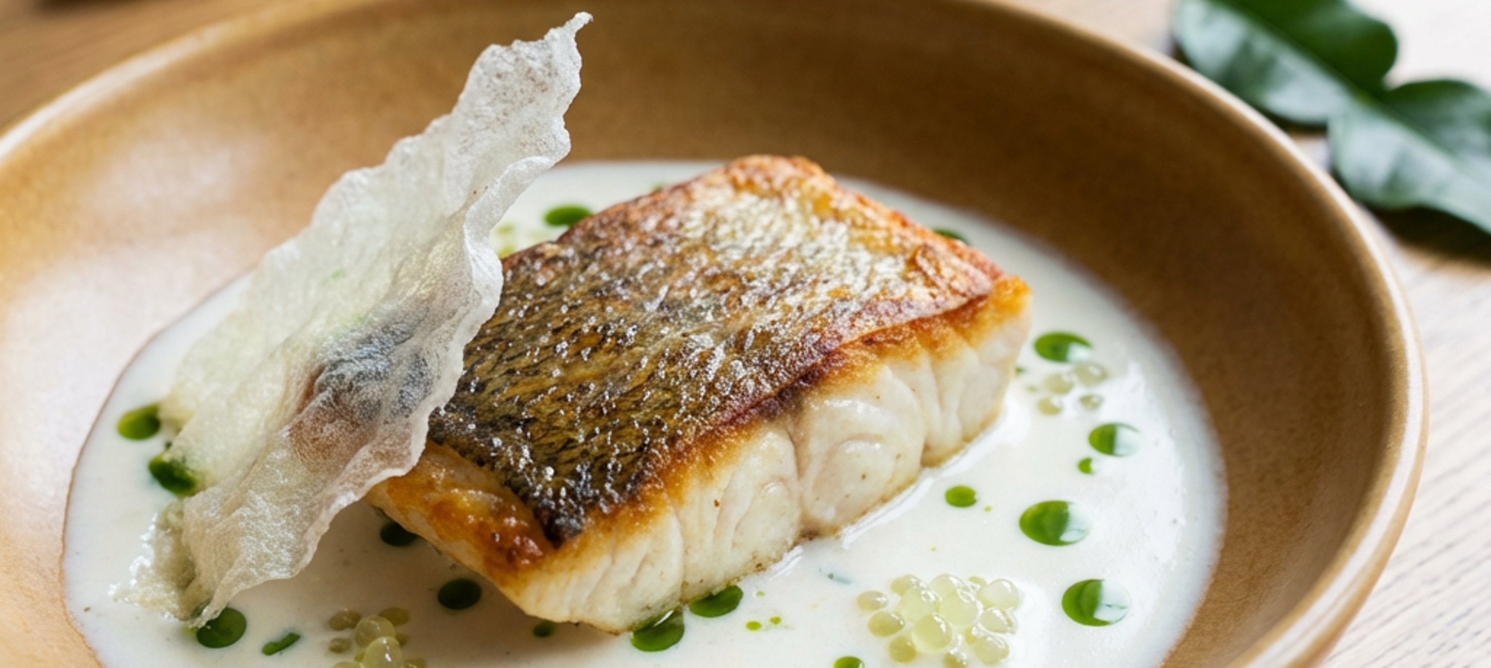 - 7Filet tresky položte do středu talíře. Omáčku smíchejte s koriandrovým nebo petrželovým olejem. Přidejte do ní limetkový kaviár a omáčku nalijte do talíře k rybě. Talíř můžete ještě ozdobit rýžovým chipsem, který připravíte vysmažením rýžového papíru. Bylinkový olej připravíte velice jednoduše, stačí když do blenderu dáte asi 30 g jakékoliv bylinky, 100 ml rostlinného oleje, špetku soli a necháte mixovat zhruba 5 minut. Poté olej přecedíte a máte hotovo.