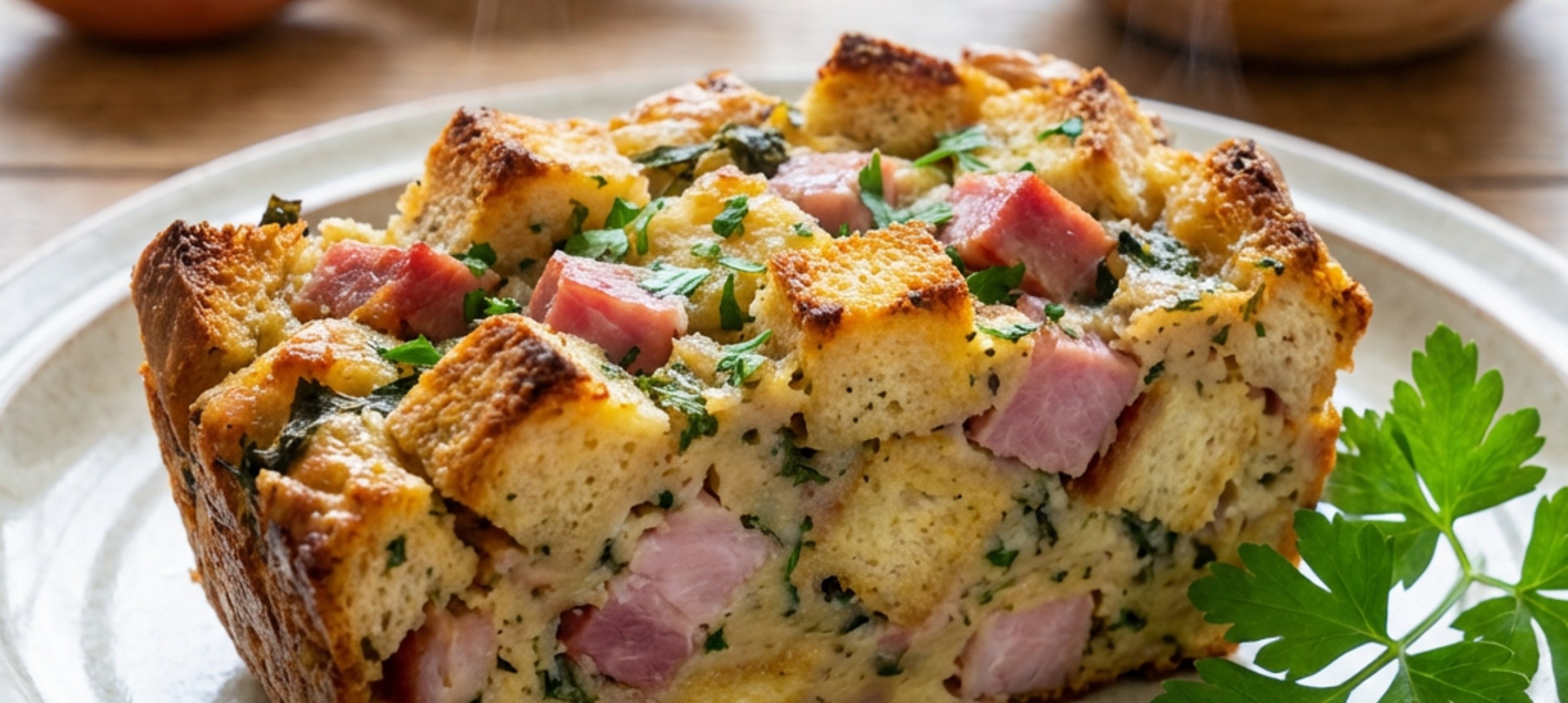 - 4Do větší mísy dejte opečené kousky chleba. Přilijte horkou smetanu, rozpuštěné máslo, nasekané kopřivy, petrželovou nať, orestovanou šalotku, kostky uzené kýty a žloutky. Osolte, opepřete a přidejte špetku muškátového oříšku. Rukami směs dobře promíchejte a nechte asi 15 minut uležet.