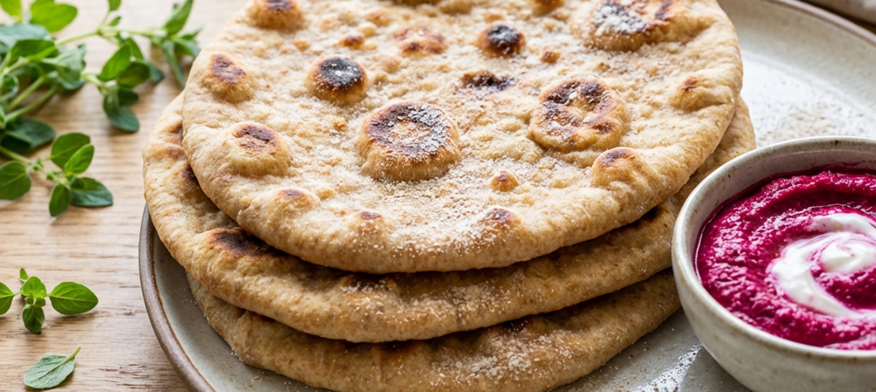 - 1K flatbreadu se skvěle hodí řepný dip. Pokud si navíc chcete flatbread ochutit, můžete do těsta přidat 1 lžičku sušených bylinek nebo jiného koření.