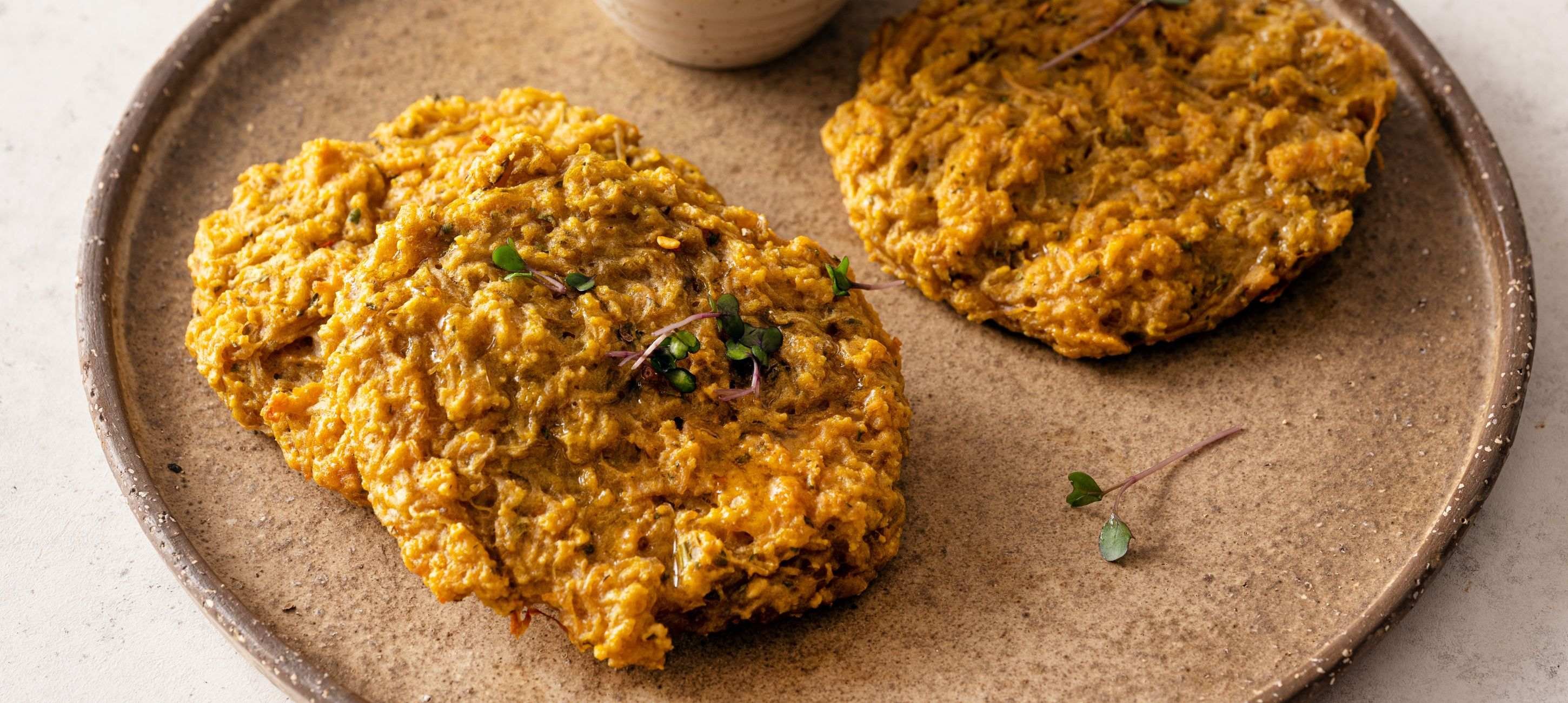 Peel the cooled potatoes and finely grate them into the prepared bowl. Add marjoram, quark, canola oil, eggs, corn breadcrumbs, baking soda, salt, and pepper to the grated potatoes and mix. Form patties weighing 50⁠–⁠55 g from the resulting dough on the lined baking sheet. Once all the dough is used, place the sheet in the preheated oven and bake for 12⁠–⁠15 minutes at 190⁠–⁠195 °C. Turn the pancakes halfway through baking.
