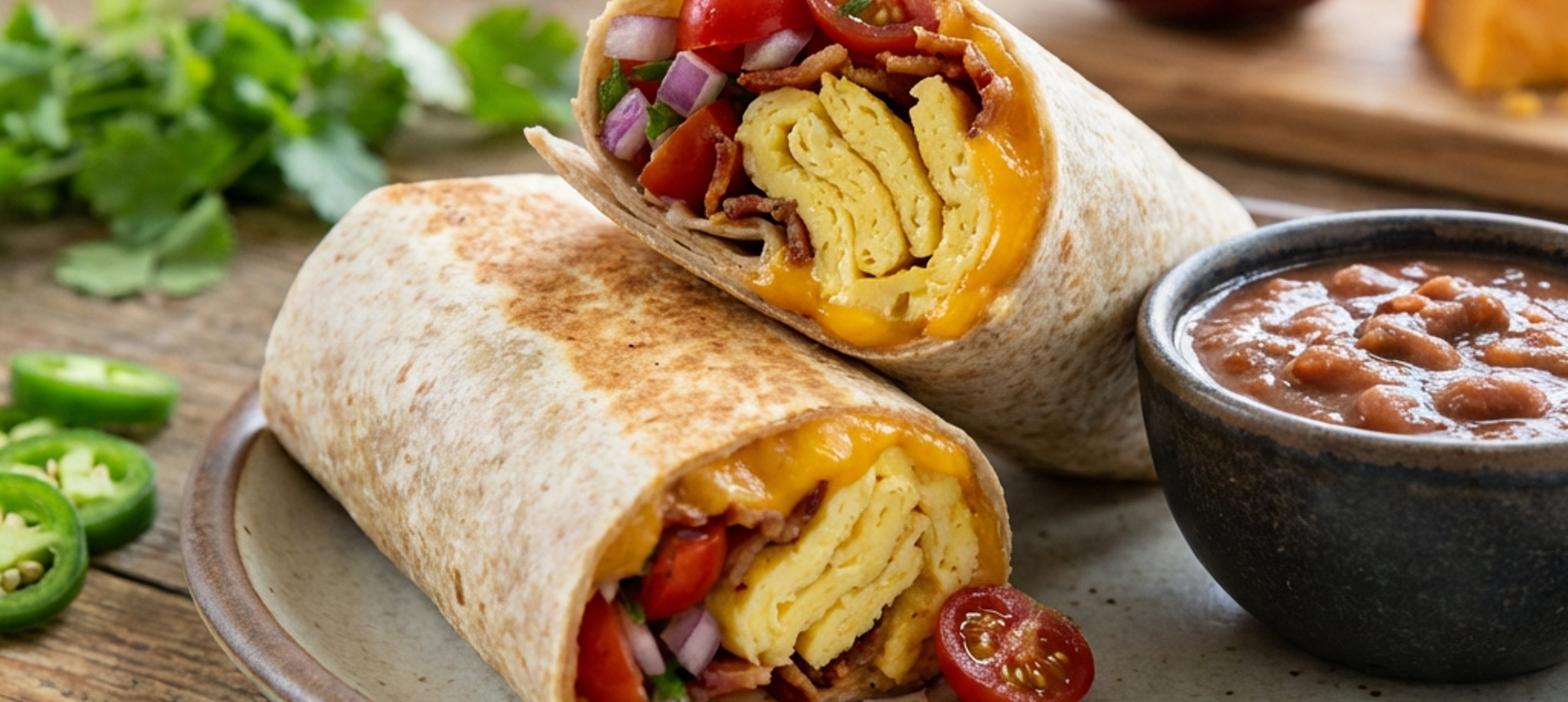 - 4Toritilly naplníme natrhaným hlávkovým salátem, přidáme rajčatovou a fazolovou směs, vaječnou omeletu, jalapeno dle chuti a ještě posypeme cheddarem. Toritilly zatočíme a upečeme nejlépe na kontaktním grilu.