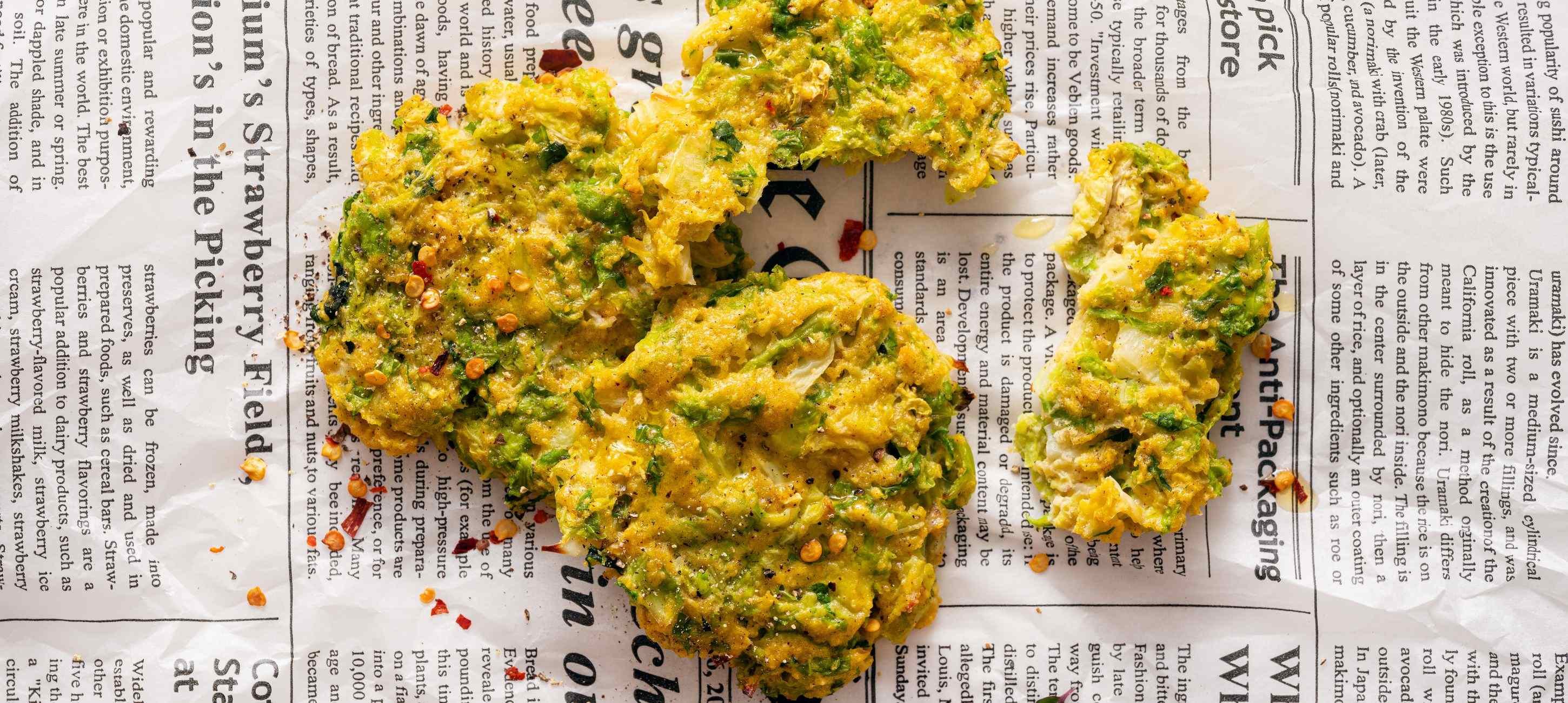 - 4Now preheat the oven to 180 – 185 °C, prepare a baking sheet (30 cm × 40 cm), and line it with baking paper. Then prepare a tall mixing container and a large bowl. Separate the eggs into yolks and whites – place the whites in the mixing container and the yolks in the bowl. Add the cooked cabbage, corn breadcrumbs, nutmeg, melted butter, salt, and pepper to the yolks and mix. Add a pinch of salt to the egg whites and beat them with a mixer on high speed for about 2 – 3 minutes until you have stiff peaks. Carefully fold the egg white peaks into the mixture in the bowl and form patties on the baking sheet with a diameter of 7 – 8 cm and a height of 0.5 – 1 cm.