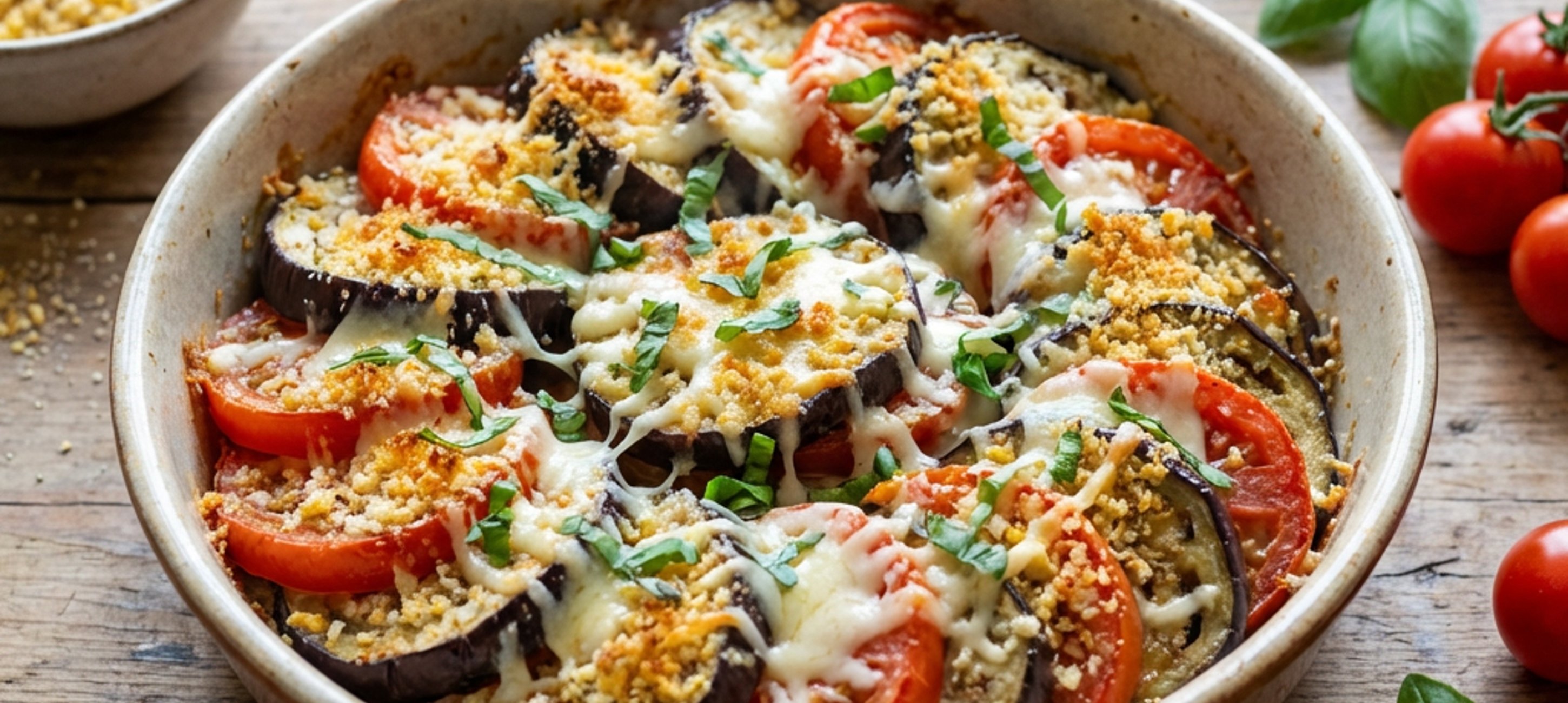 - 5Po upečení rozdělte zapečenou směs na 3 porce a podávejte.