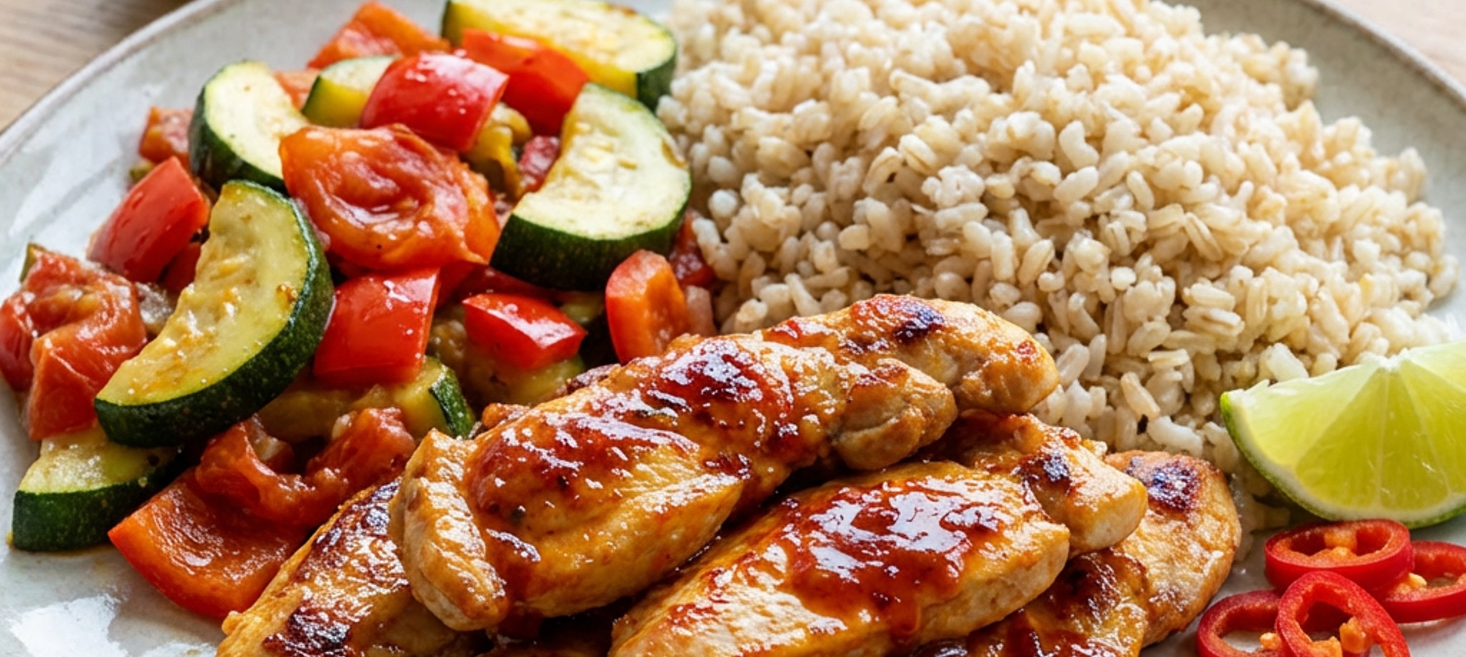 - 6Podívejte s rýží, opékanou zeleninou a piri-piri kuřecím masem.