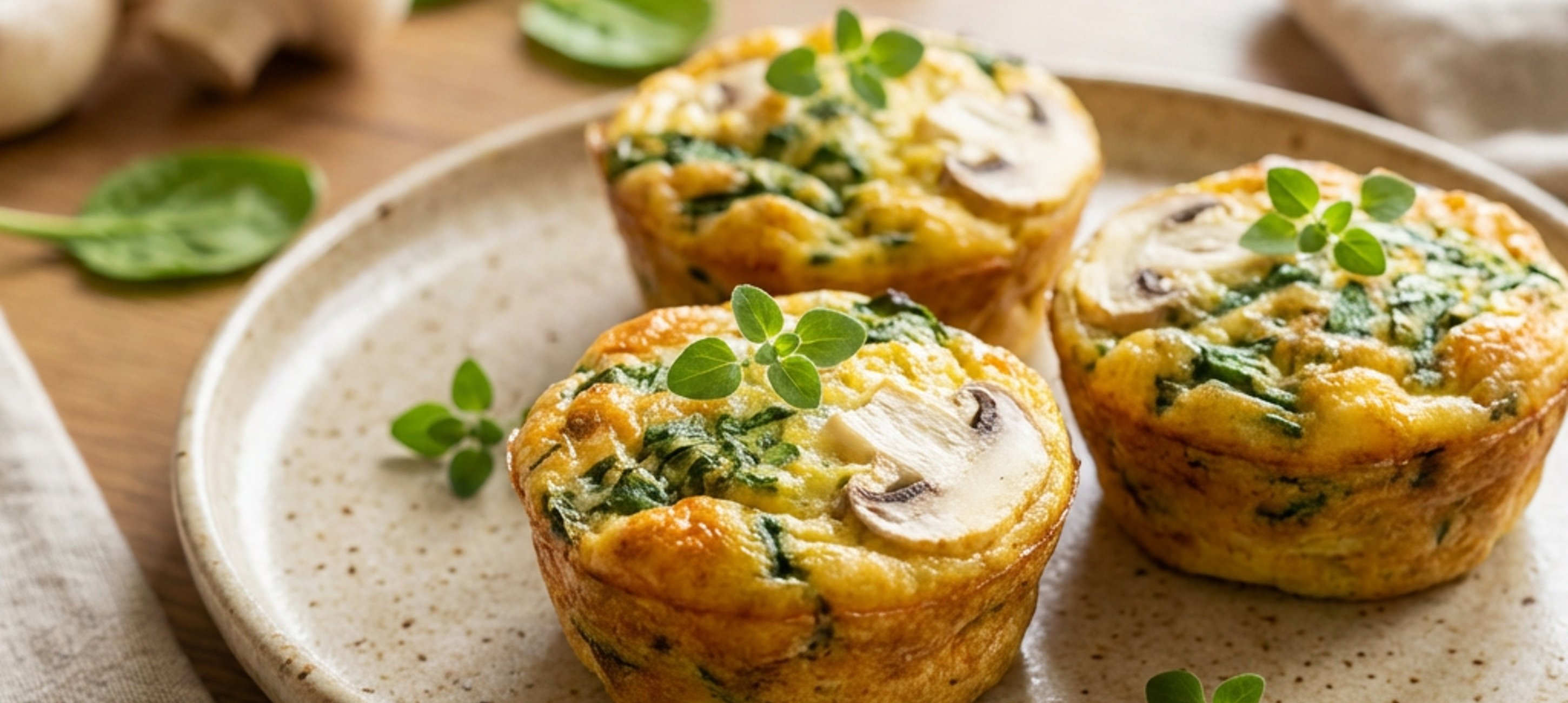 - 3Jakmile žampionová směs vychladne, přidejte k ní do mísy sůl, pepř, sušenou majoránku, vejce a nakrájený baby špenát a promíchejte. Vzniklou směsí naplňte jednotlivé prohlubně ve formě na muffiny do ¾ jejich objemu. Poté formu vložte do předehřáté trouby a pečte 30–35 minut na 180–185 °C.