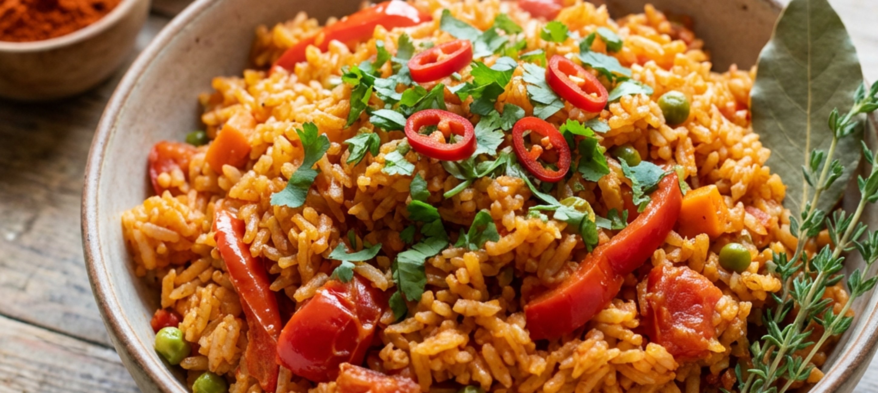 - 4K omáčce přidáme propláchnutou rýži a dobře promícháme. Nalijeme kuřecí vývar a přivedeme směs k varu. Snížíme teplotu, přikryjeme pokličkou a necháme jemně vařit asi 15 - 20 minut, nebo dokud rýže není měkká a veškerá tekutina není absorbována. Občas zamícháme, aby se rýže nepřichytila ke dnu.