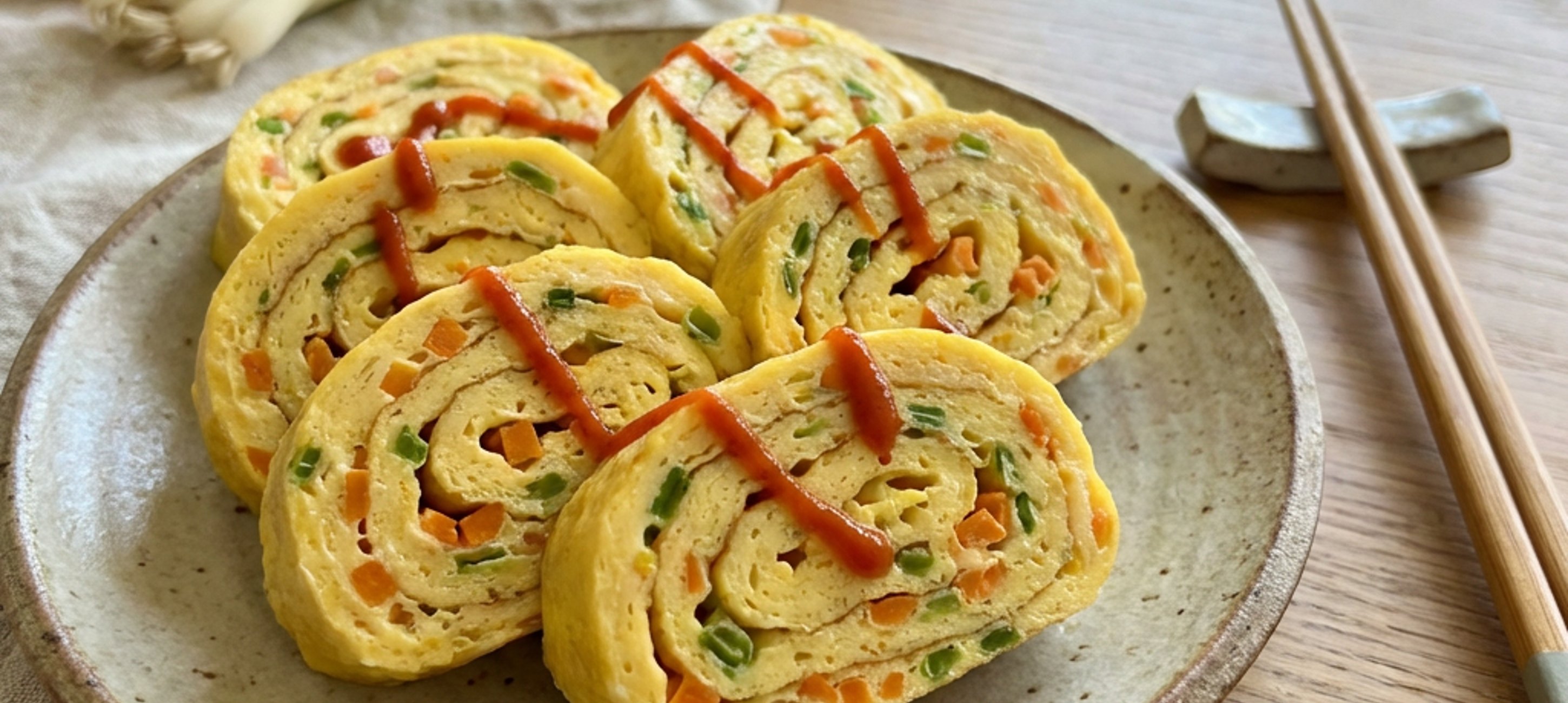 Omeletu podávejte pokapanou chilli omáčkou anebo sójovou omáčkou.