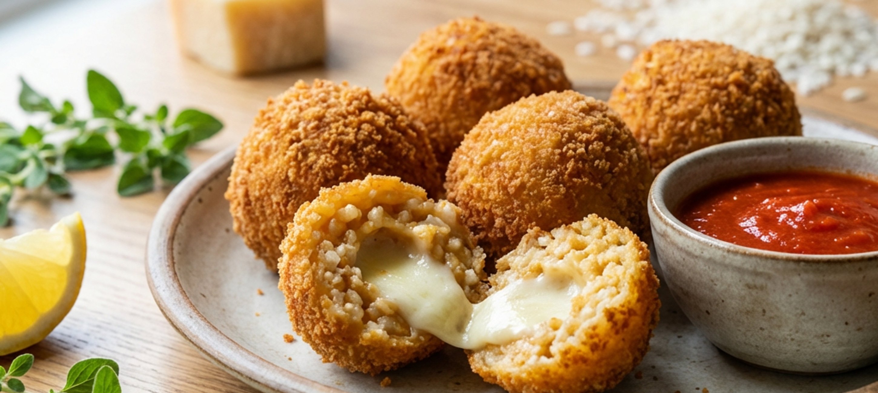 - 6Arancini smažte na středně vysoké teplotě dozlatova, asi 2-3 minuty z každé strany. Po osmažení je vyjměte a nechte okapat na papírovém ubrousku.