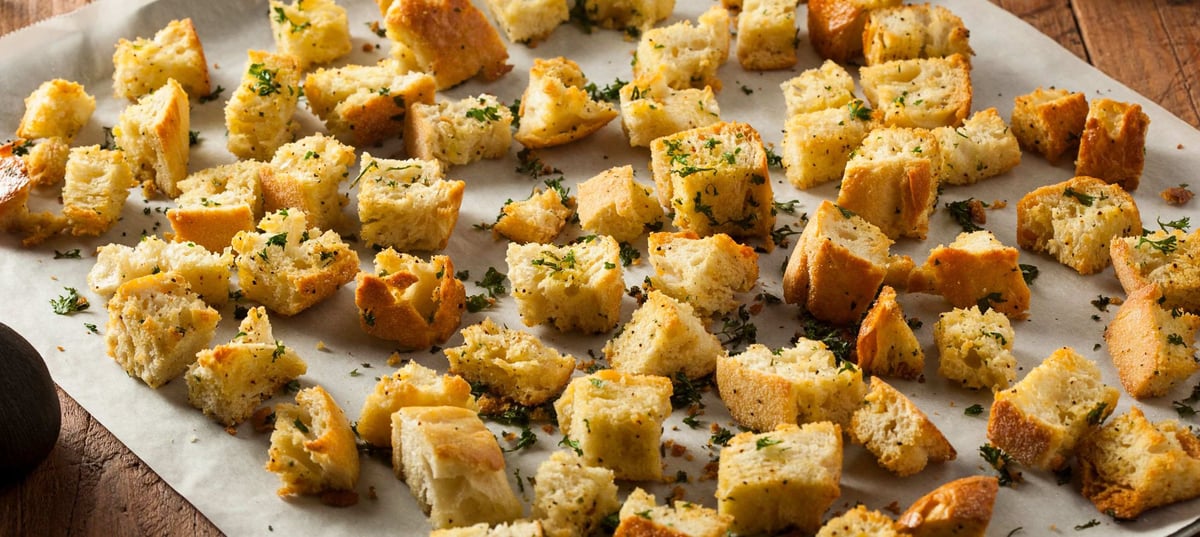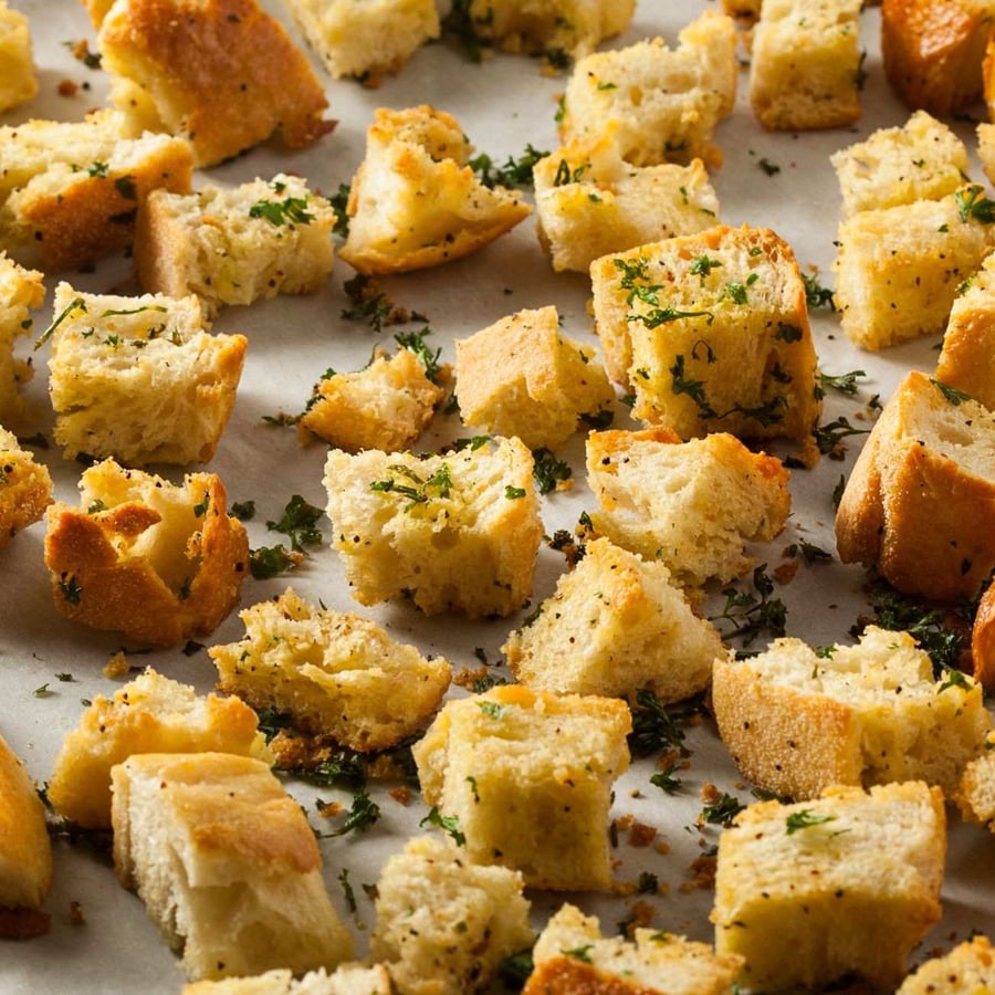 - 4After removing from the oven, let the croutons cool slightly. If desired, you can sprinkle them with grated Parmesan while still warm.